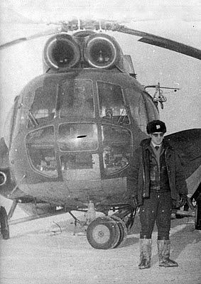 КВС Анатолий Трупин у вертолёта СССР-25542. Видны шарнирно-маятниковая подвеска и бортовая лебёдка ЛПГ-2. В ЧОАЭ такая конфигурация была только у 25542. Вертолёт оборудован дополнительным местом радиста. Дополнительная тросовая антенна видна над бортовой лебёдкой.
