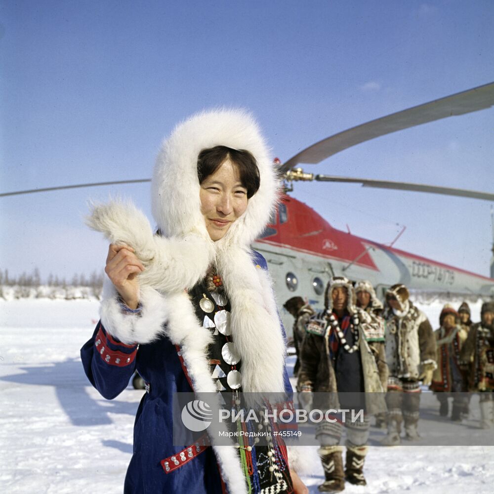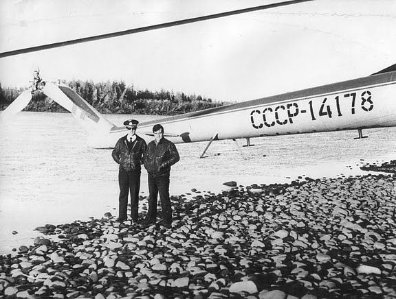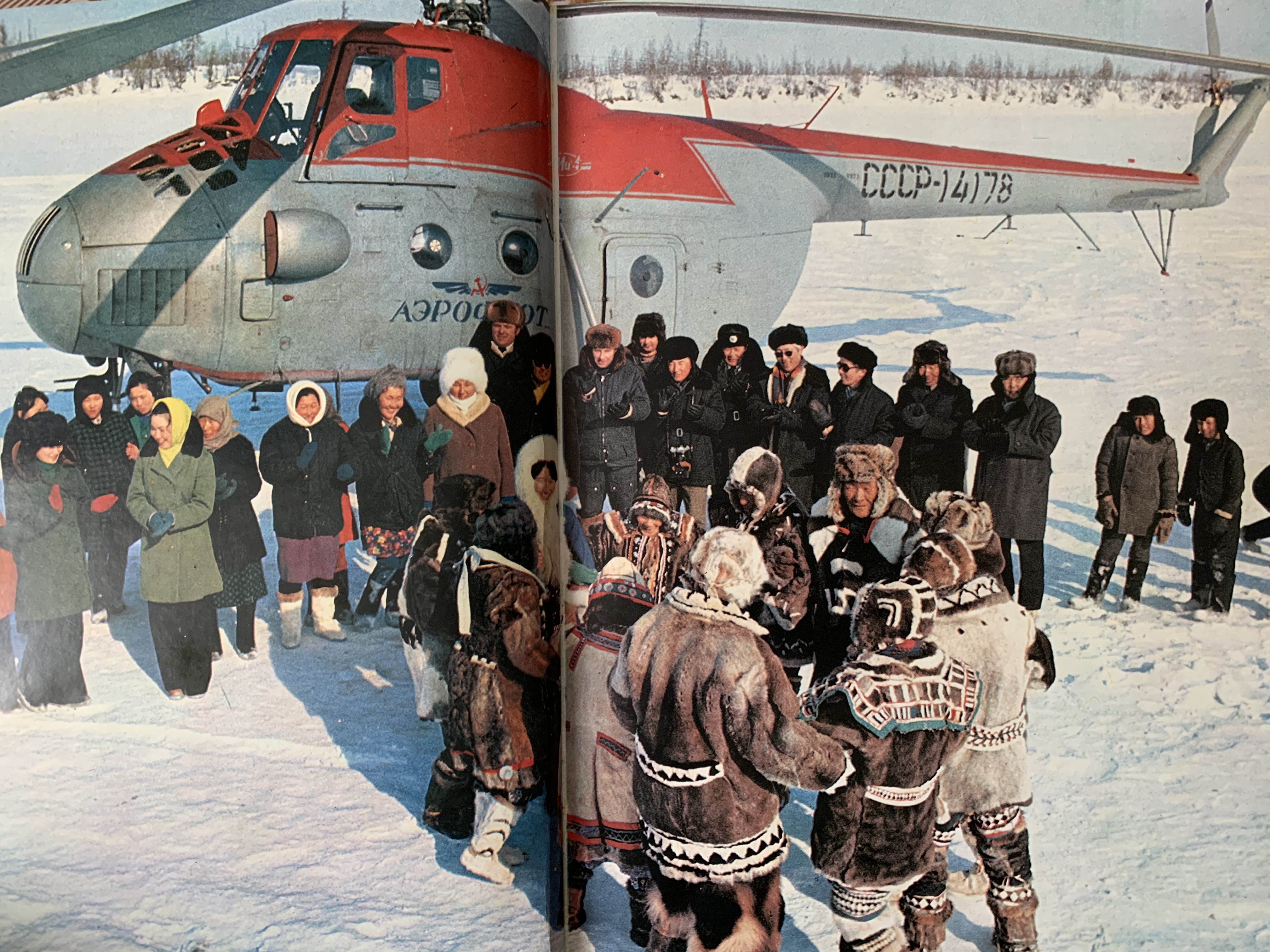 Вертолёт Чокурдахской отдельной авиаэскадрильи КИОАО. Фото из альбома "Лена - голубой меридиан Якутии", фотограф Владимир Чин-Мо-Цай.