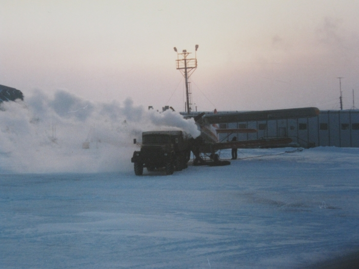 Аэропорт Чокурдах, в "железном" ряду. Под облезающей краской проступает регистрация СССР...