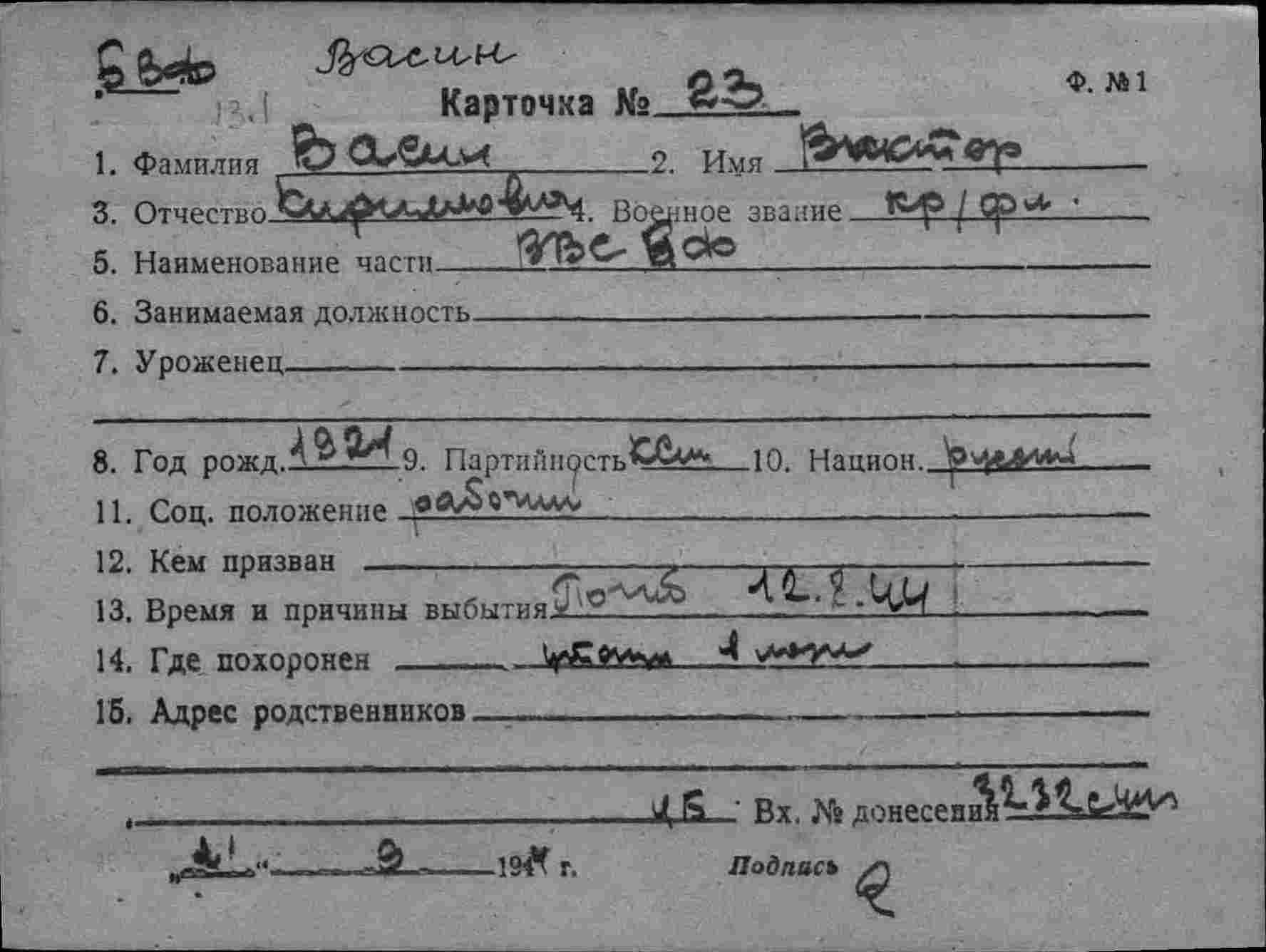 Карточка (ЦВМА, Картотека безвозвратных потерь).