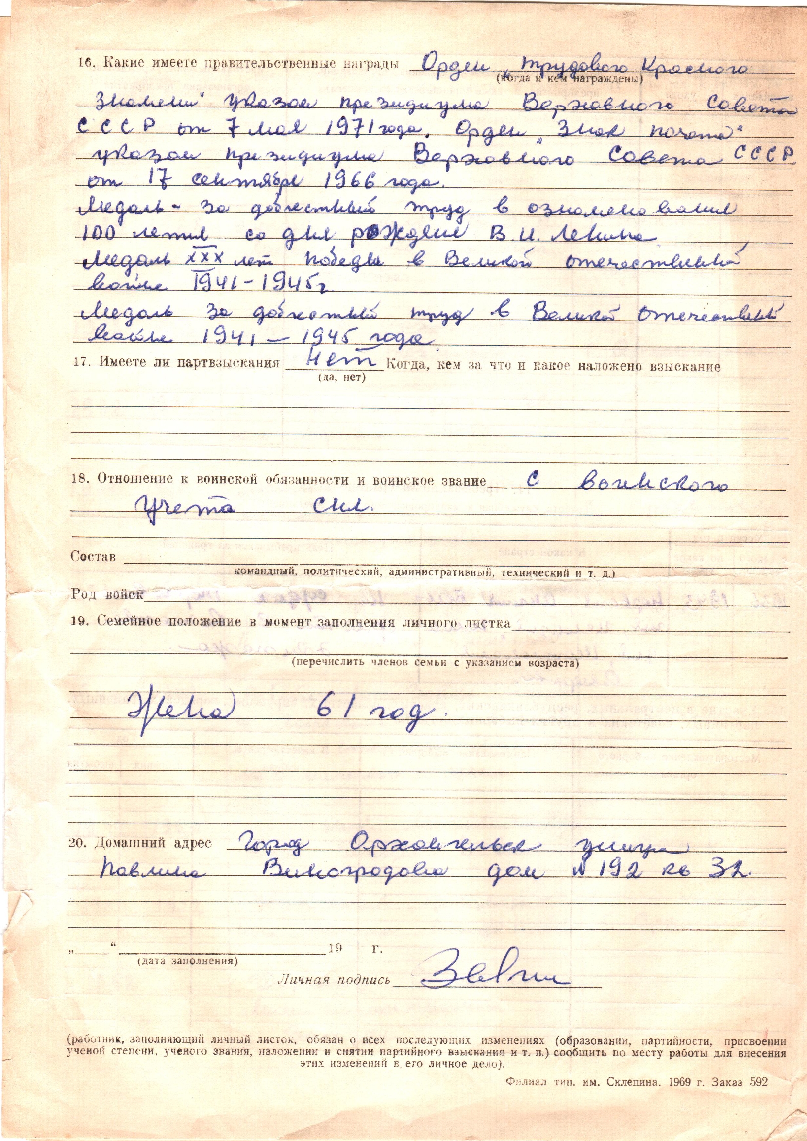 Отец погиб в 1914 году на фронте. Нас с младшим братом воспитывала мать. В 1924 году окончил 7 классов.