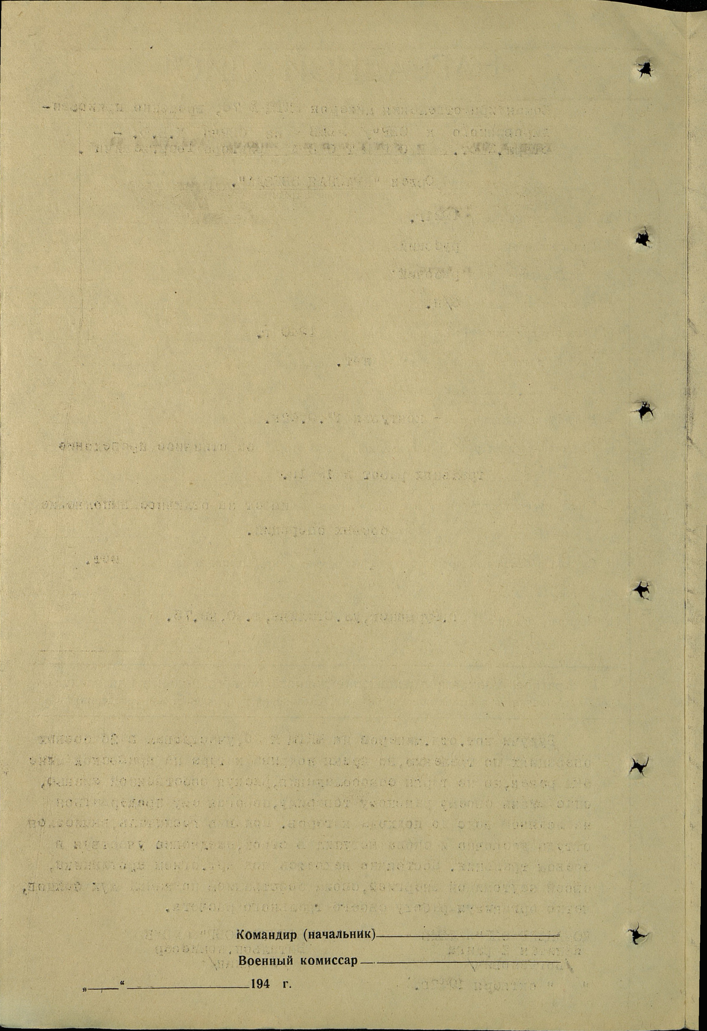 Выдана краснофлотцу Корытову Виктору Георгиевичу в том, что он действительно принимал участие в Великой Отечественной войне 1941-1945 г.г. с 22 июня 1941 г. по 12 августа 1944 г. в должности трюмного машиниста в составе ТЩ-114.
