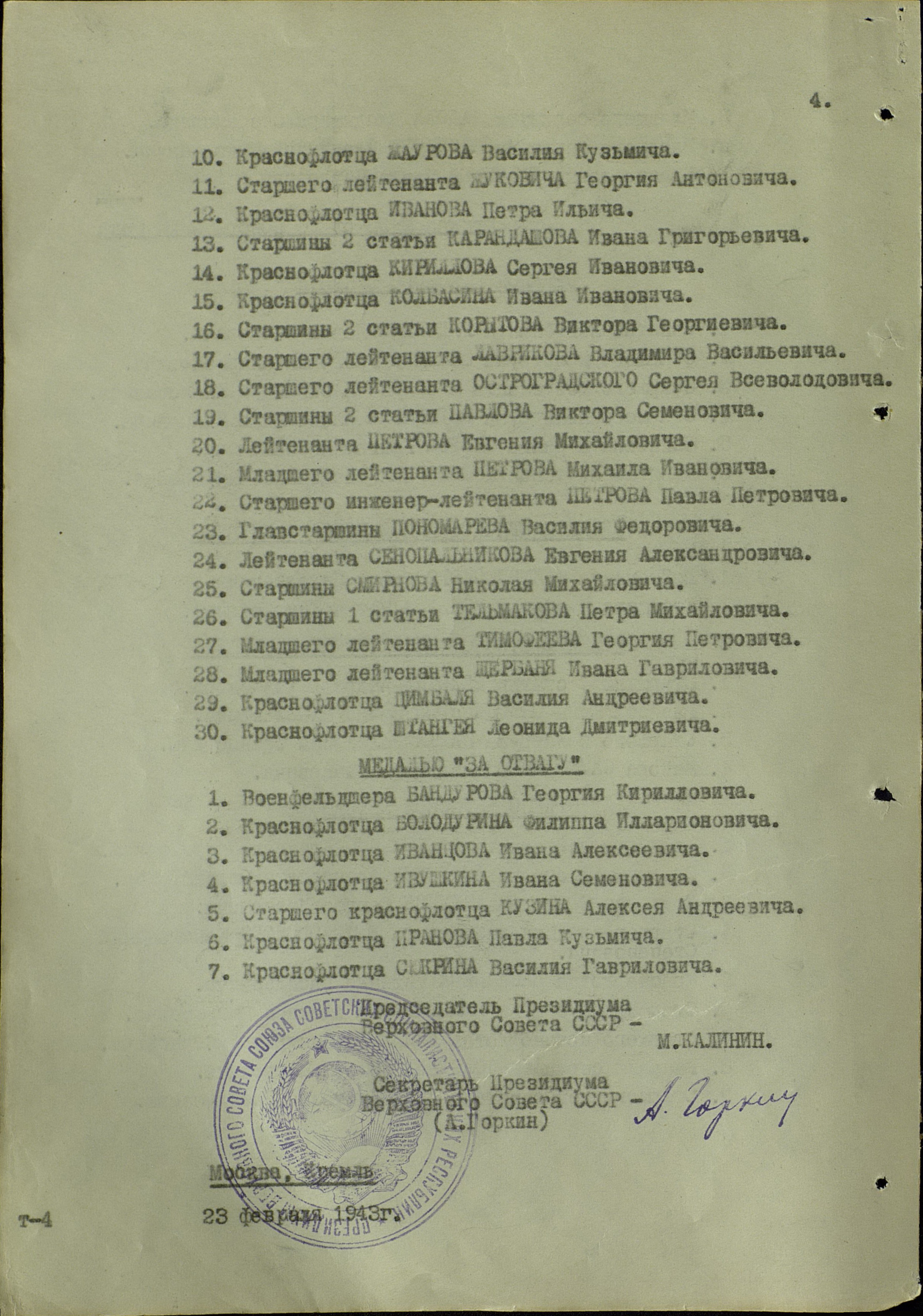 Старшина 2 статьи Корытов с первых дней войны находился на катерах МО. За период сложных боевых операций, несмотря на сложность боевого задания, все одно – всегда выполняет. Катер, на котором находился тов. Корытов, подорвался на мине, вся команда погибла, а тов. Корытова подобрали в заливе с тяжелой контузией, за стойкость и мужество тов. Корытов награжден орденом «Красный звезды» в 1942 году. Тов. Корытов был направлен в США для выполнения правительственного задания. Во время приемки корабля тов. Корытов быстро овладел специальностью трального машиниста, а до этого был минером. За период перехода не допустил ни одного скисания (?) механизмов, тов. Корытов проявил находчивость при передаче топлива катерам на ходу, с этой задачей справился хорошо. Вступив в состав СФ, ТЩ-114, выполняя боевое задание в арктическом конвое, при этом были уничтожены две немецких подводных лодки, пытавшиеся торпедировать ледокол «И. Сталин». Немалая заслуга […] тов. Корытова.