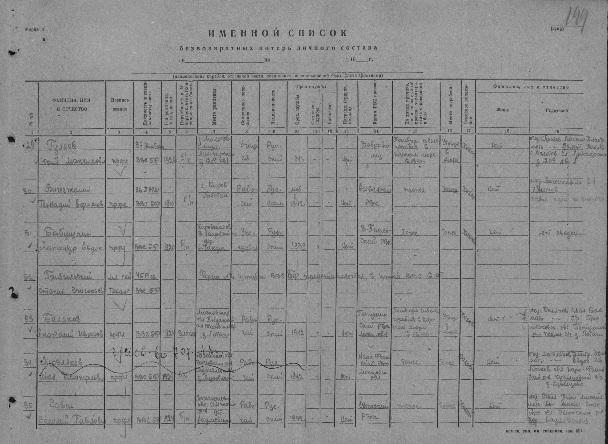 Карточка (ЦВМА, Картотека безвозвратных потерь).