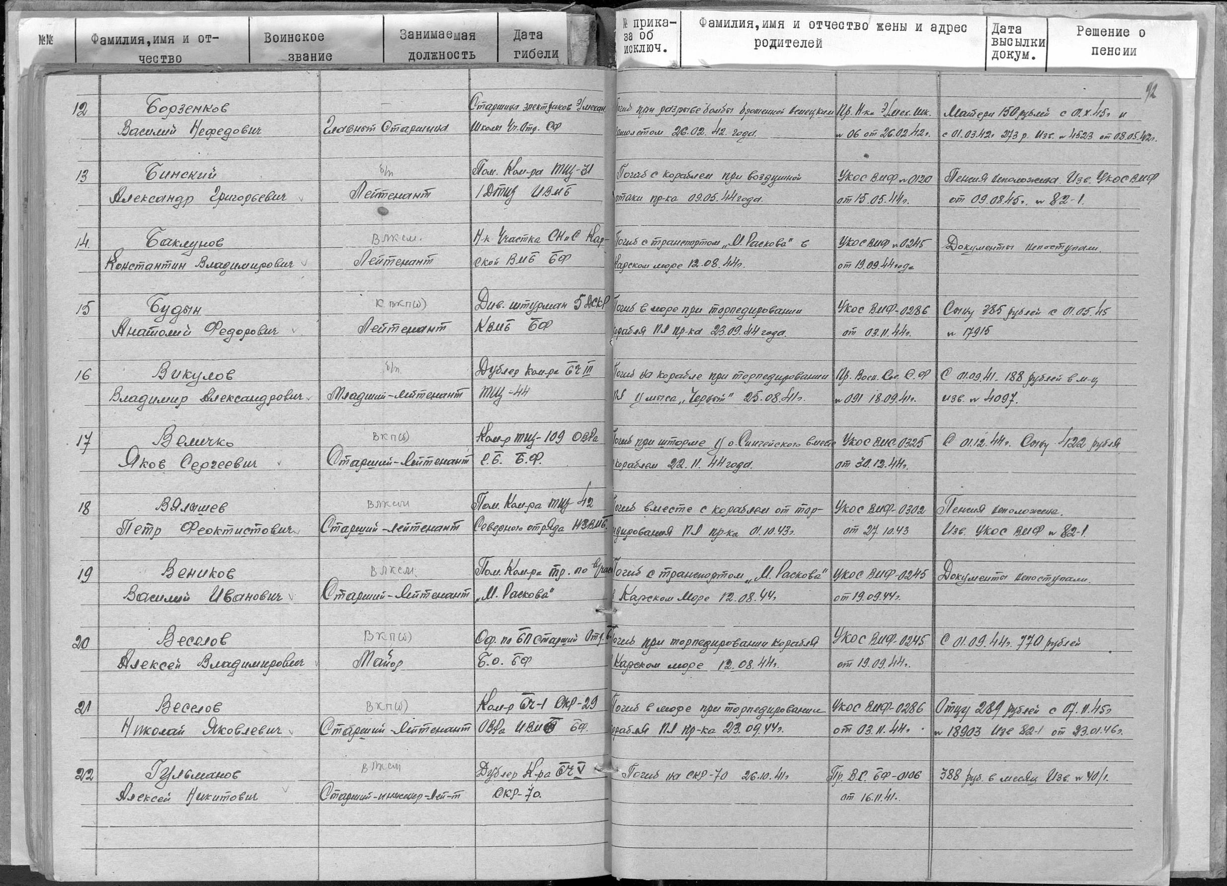 Список безвозвратных потерь командно-начальствующего состава Беломорской военной флотилии (ЦВМА, Ф. 1650, О. 1, Д. 11).