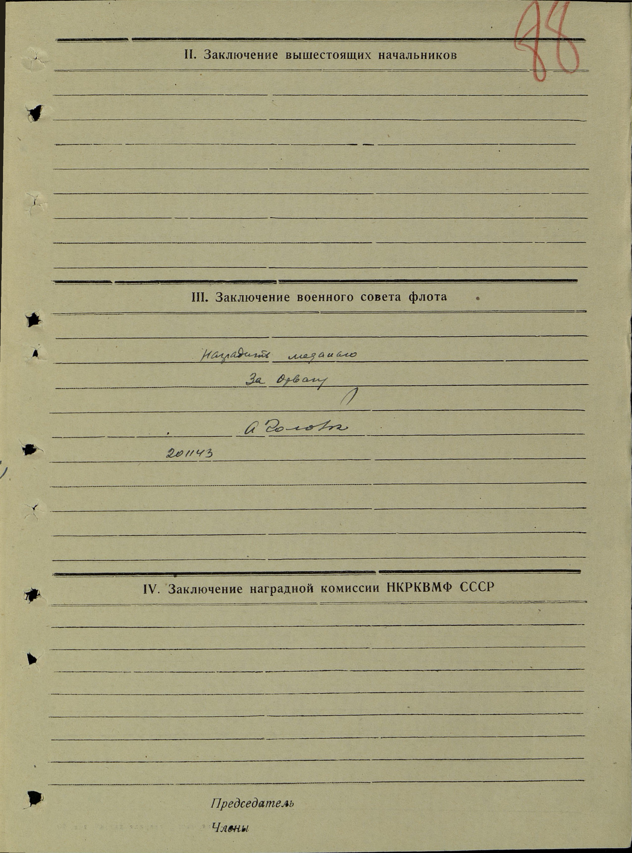 Не малая в этом заслуга старшего краснофлотца Дуракова. Ходатайствую о награждении старшего краснофлотца Дуракова медалью «За отвагу».