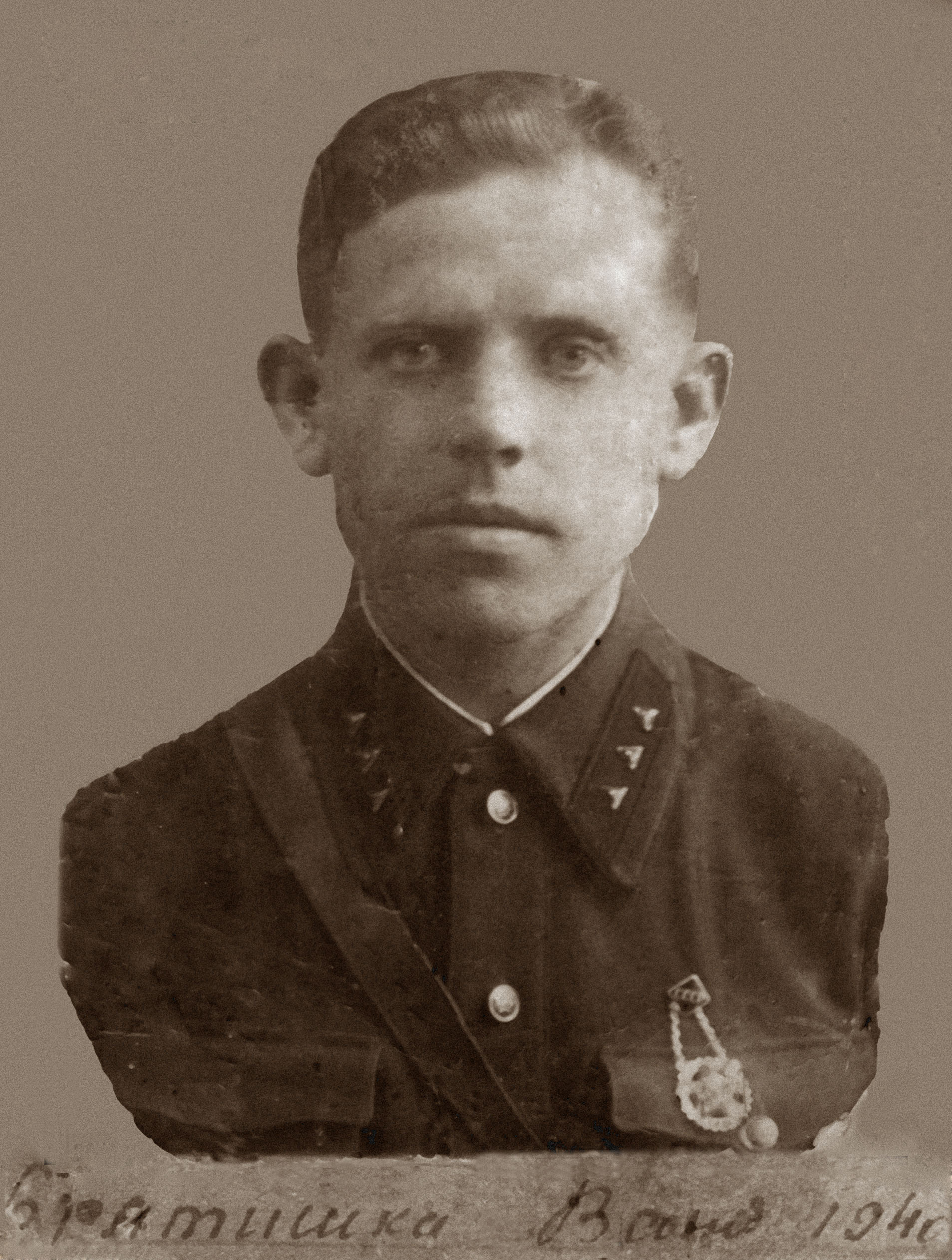 1266 с/п, 385 с/д. Звание: мл.лейтенант, должн: парторг. Время выбытия: 28.03.1944, причина: погиб в бою. место захоронения: Могилевская обл., Чаусовский р-он, 0,6 км к Востоку от д.Лапень.