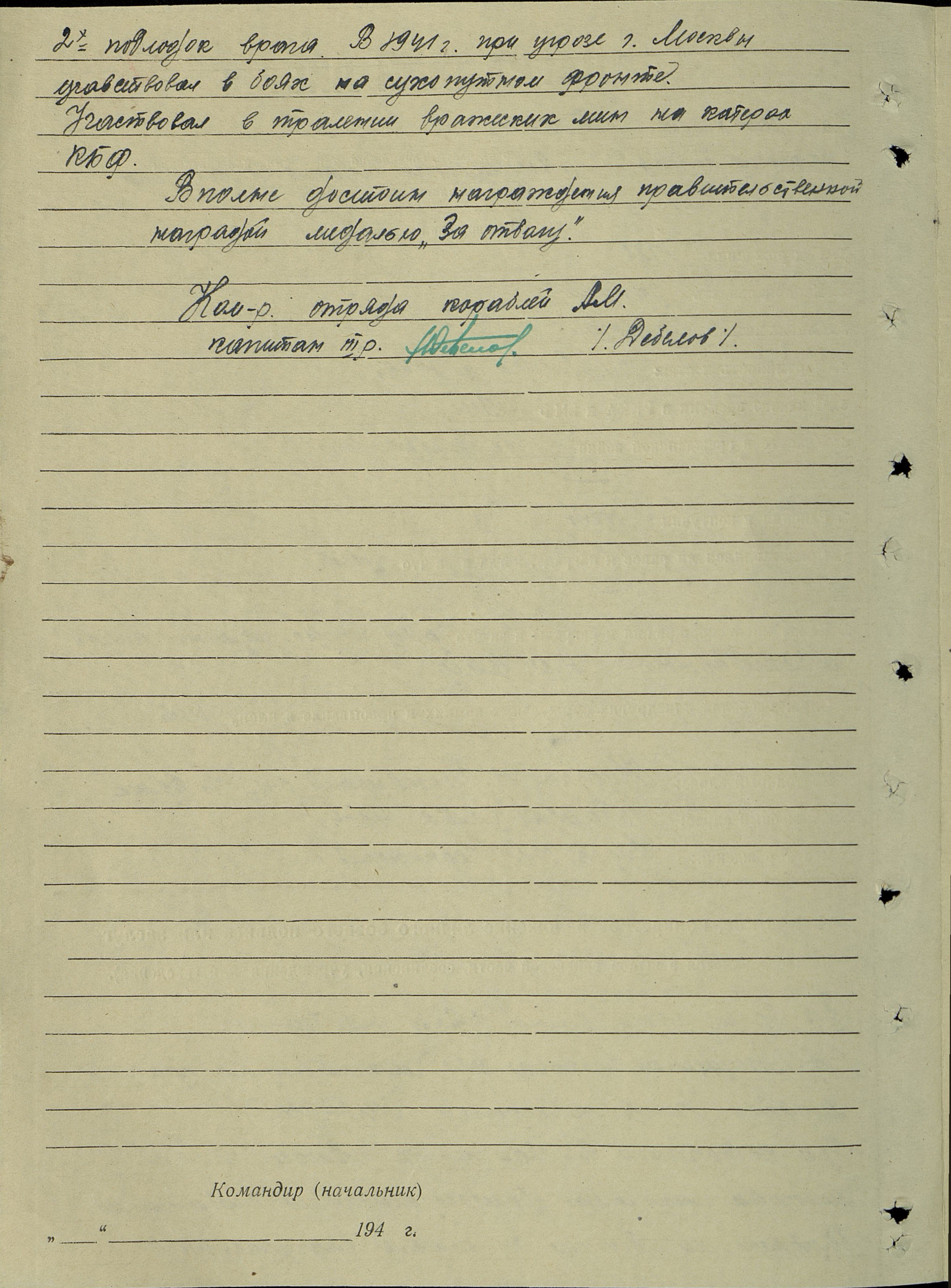 Краткое, конкретное изложение личного боевого подвига или заслуг.