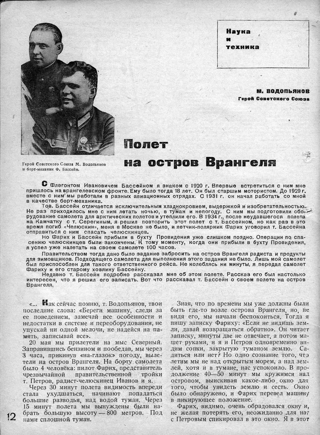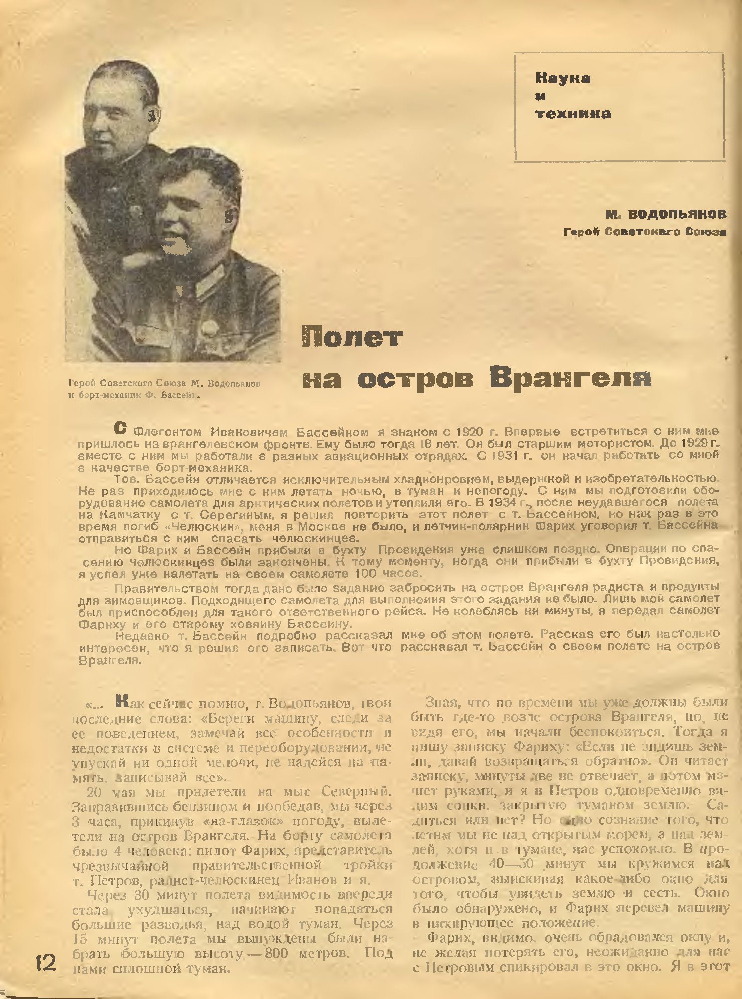 Недавно т. бассейн подробно рассказал мне об этом полете. Рассказ его был настолько интересен, что я решил его записать. Вот что рассказал т. Бассейн о своем полете на остров Врангеля.