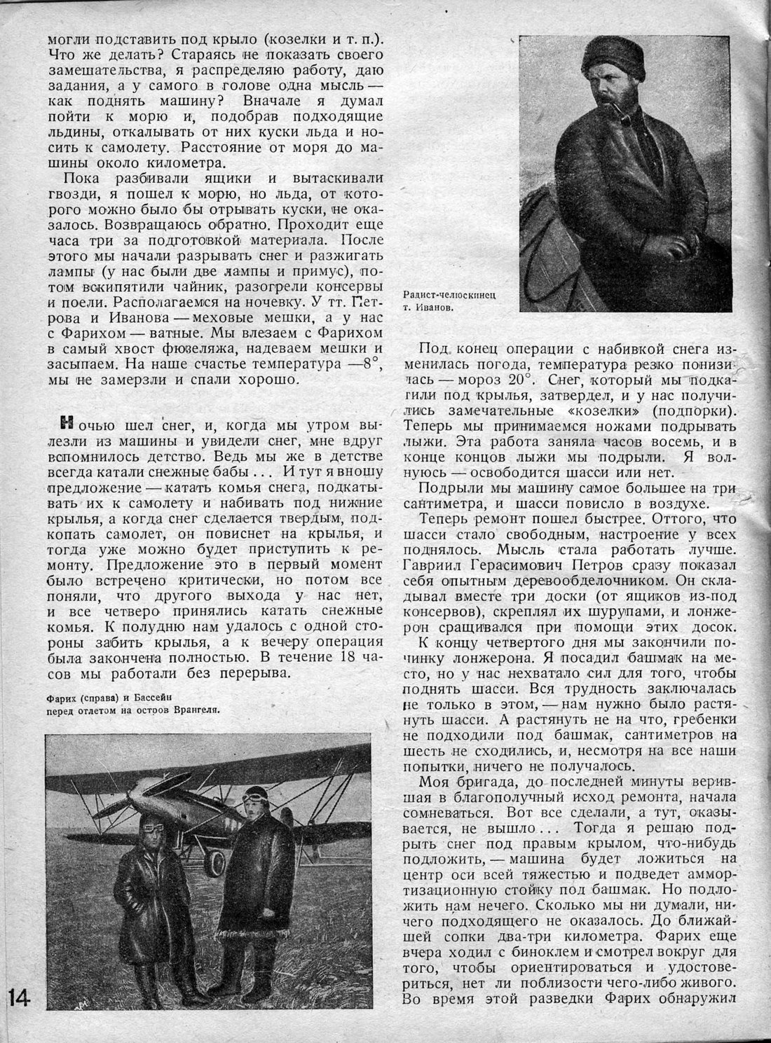 Правительством тогда дано было задание забросить на остров Врангеля радиста и продукты для зимовщиков. Подходящего самолета для выполнения этого задания не было. Лишь мой самолет был приспособлен для такого ответственного рейса. Не колеблясь ни минуты, я передал самолет Фариху и его старому хозяину Бассейну.