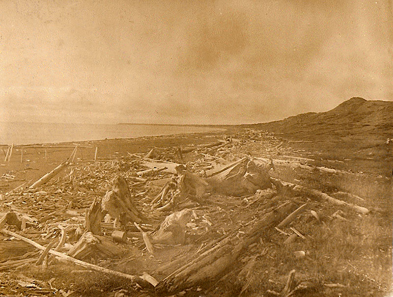 Второго сентября мы отправились в период между сроками работы по острову. Осматривали в основном берега, на которых скопилось большое количество плавника, выброшенного морем во время штормов, состоящего от мелких щепок, деревьев с корнями, отдельных стволов разных размеров, между которых встречаются строевые брёвна и доски.