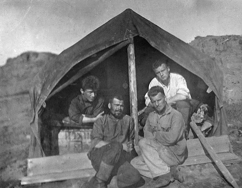 Пола в этом срубе не было, а потолок состоял из небрежно набросанных досок, и сверху присыпан песком с землей. Крыши вообще не было, поэтому во время летних дождей вода попадала во внутреннее помещение, от которого спасались только дополнительным настилом над койками. Посредине этого сооружения стояла железная печка, которая обогревала это помещение и являлась одновременно и плитой для приготовления пищи.