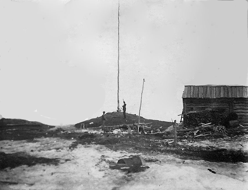 Установку мачты произвели на холме вблизи от жилого дома. Второй конец антенны был закреплен за стойку маяка. В этот же день приступили к постройке холодного тамбура при входе в дом и помещения для хранения продуктов. Окончание этой работы отложили на следующий день.