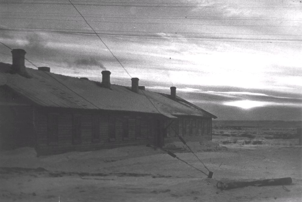 В последние дни перед возвращением наших разведочных отрядов на базу в Хабарово начались сильные метели, переходившие при очень сильном ветре в пургу, которая срывала наши палатки и при сильном морозе приводила к обмораживанию лица и рук работающих. По возвращении на базу мы продолжали наши камеральные работы по составлению проектных материалов. Длинная полярная ночь, проведенная на берегу полярного моря, навсегда запомнится своей темнотой, шквальными ветрами и снежными буранами, во время которых дойти от нашего жилого барака до рабочего помещения склада, до нашей радиостанции и даже до уборной можно было, только крепко держась за протянутые между этими пунктами веревками.