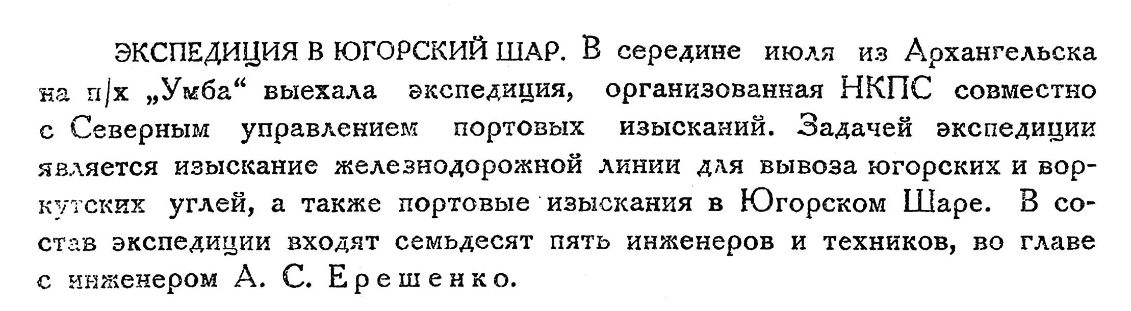 Одновременно с этим на побережье Баренцова моря, теми же скоростными методами, должны быть произведены изыскания для проектирования и строительства морского порта по приему крупнотоннажных кораблей.