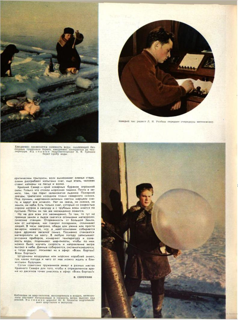 1сюж. - Территория ВСХВ. В конференц-зале вручение медалей и свидетельств участникам выставки - дояркам, животноводам. 2сюж. - Дрейфующая станция в Арктике Северный полюс-3 , встреча самолета, разгрузка, письма. Научные исследования на станции. Отдых в кают-компании. 3сюж. - Уборка свеклы в колхозе Хмельницкой области, лаборатория на сахарном заводе, мешки с сахаром. 4сюж. - Восстановление панорамы обороны Севастополя к столетию со времени героической обороны города в 1854-55 г. г. , работают художники. 5сюж. - Встреча в ЦДРИ греческих артистов. Певица поет греческую народную песню. 6сюж. - 5-ая годовщина со дня образования ГДР. Митинг на площади в Берлине. Выступления В. Ульбрихта и В. М. Молотова.