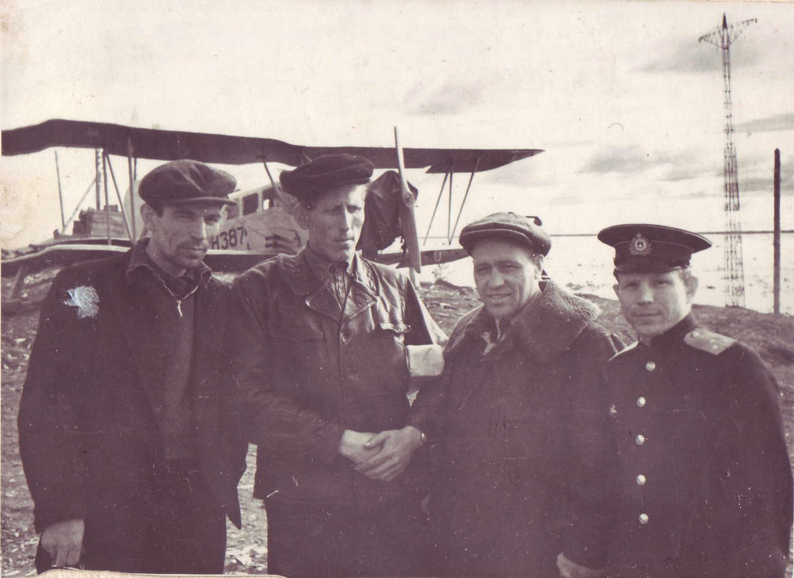 С экипажем, на корточках - механик - Перевезенцев Георгий и 2 гидролога (слева) Н342(?)