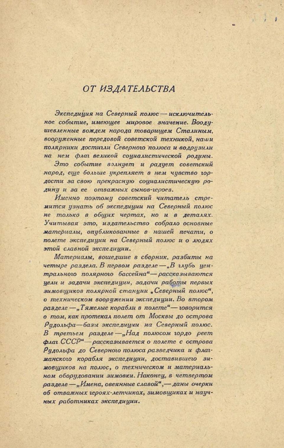 Намеченные размеры книжки не дали авторам возможности делать глубокие исторические экскурсы и заставили держаться в рамках полярных экспедиций нашего времени, начиная с экспедиции Нансена 1893—94 гг. и первой воздушной экспедиции Андре, происходивших почти на рубеже нынешнего столетия и по духу своему принадлежащих нашему сегодняшнему дню.