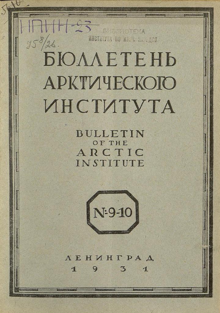 Бюллетень Арктического института СССР. № 9-10.-Л., 1931