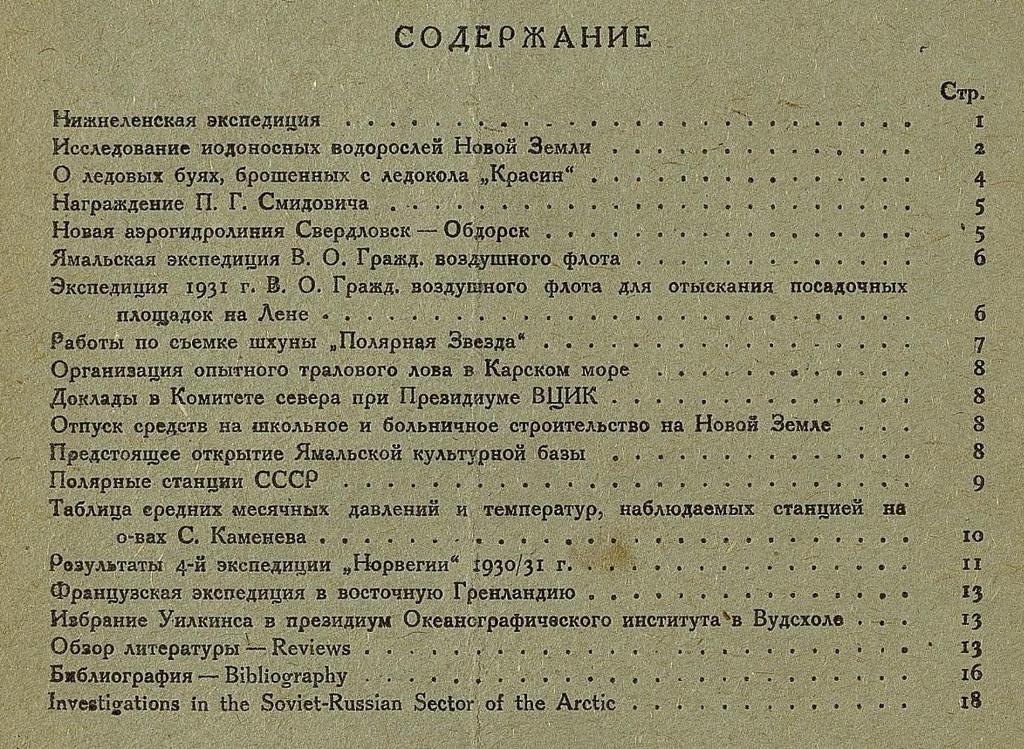 Издание Всесоюзного арктического института Главного управления Северного морского пути при СНК СССР. Выходил в 1931-1936 гг. в Ленинграде. Издание прекращено в 1937 г., взамен стал выходить журнал «Проблемы Арктики». Периодичность: 12 номеров в год. На страницах журнала публиковались результаты научных экспедиций, материалы новейших исследований по истории открытия, освоения и изучения Арктики, материалы Общих собраний Института, заседаний Ученого совета, обзоры литературы.