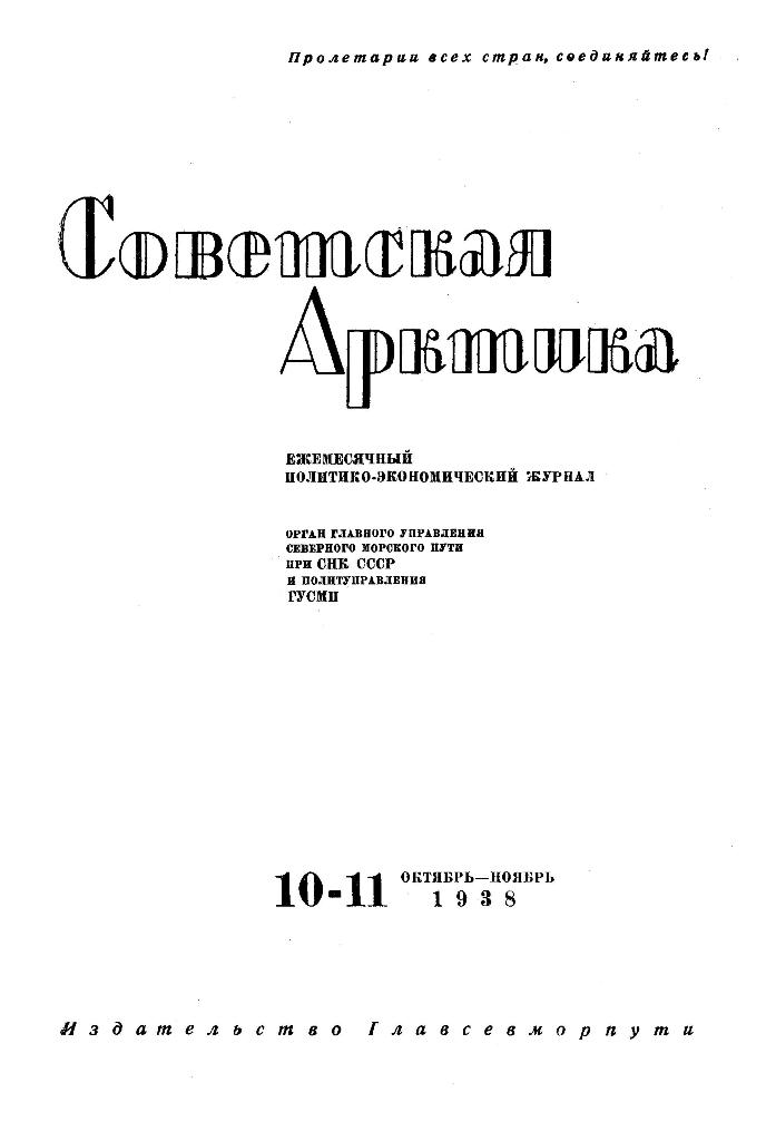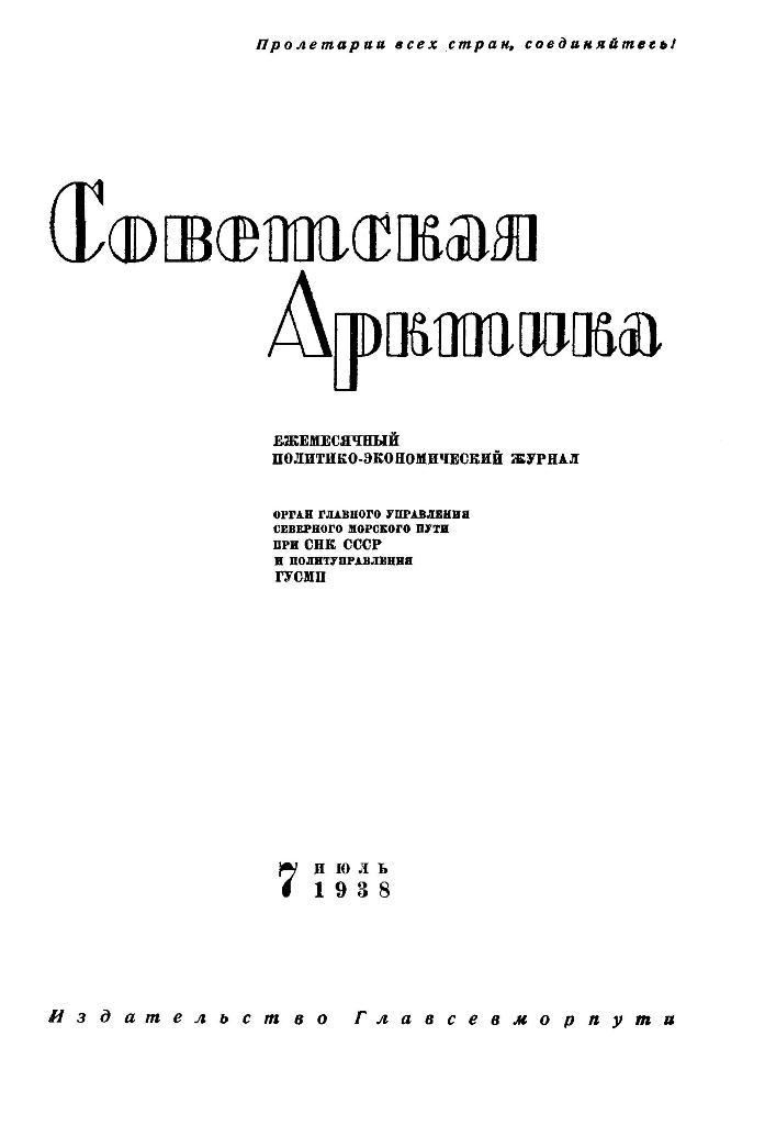 Журнал "Советская Арктика", ГУСМП, 1938, №1