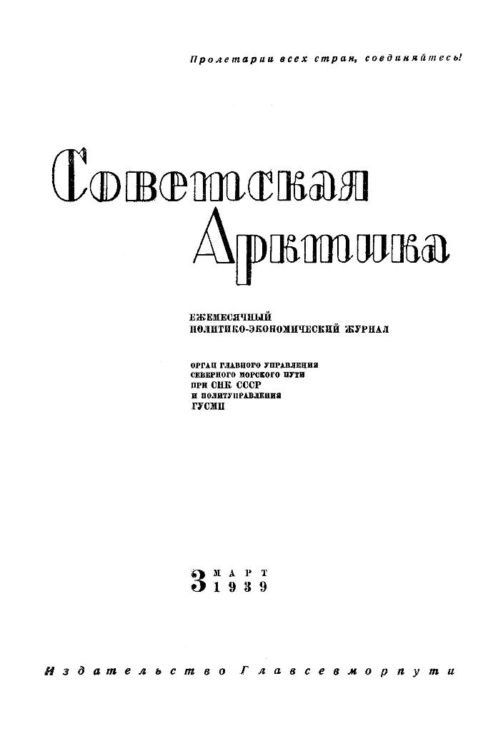 Журнал "Советская Арктика", ГУСМП, 1939, №3