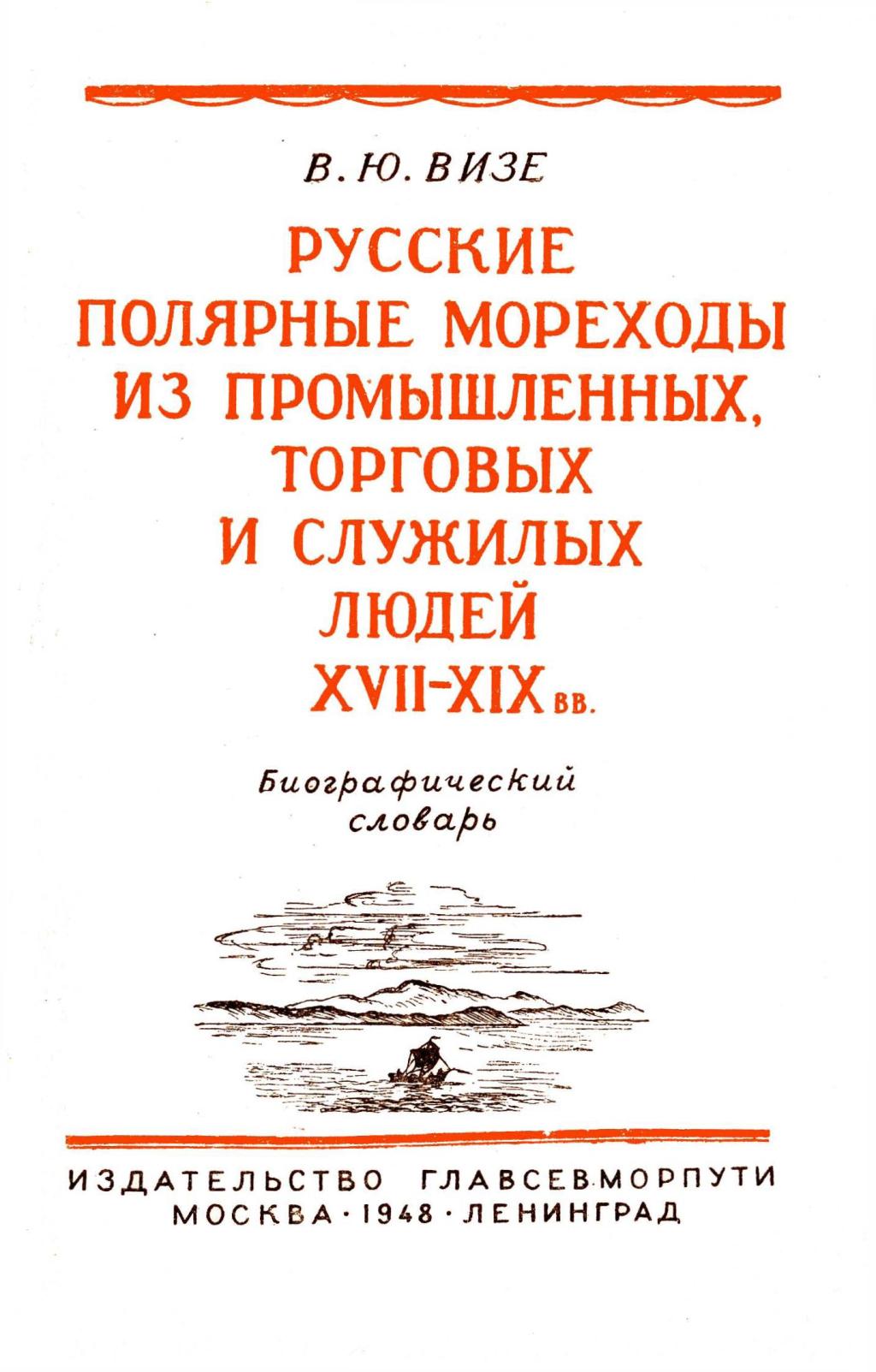 Визе В. Ю. Русские полярные мореходы из промышленных, торговых и служилых людей XVII-XIX вв. Издательство Главсевморпути. М-Л., 1948.72 стр