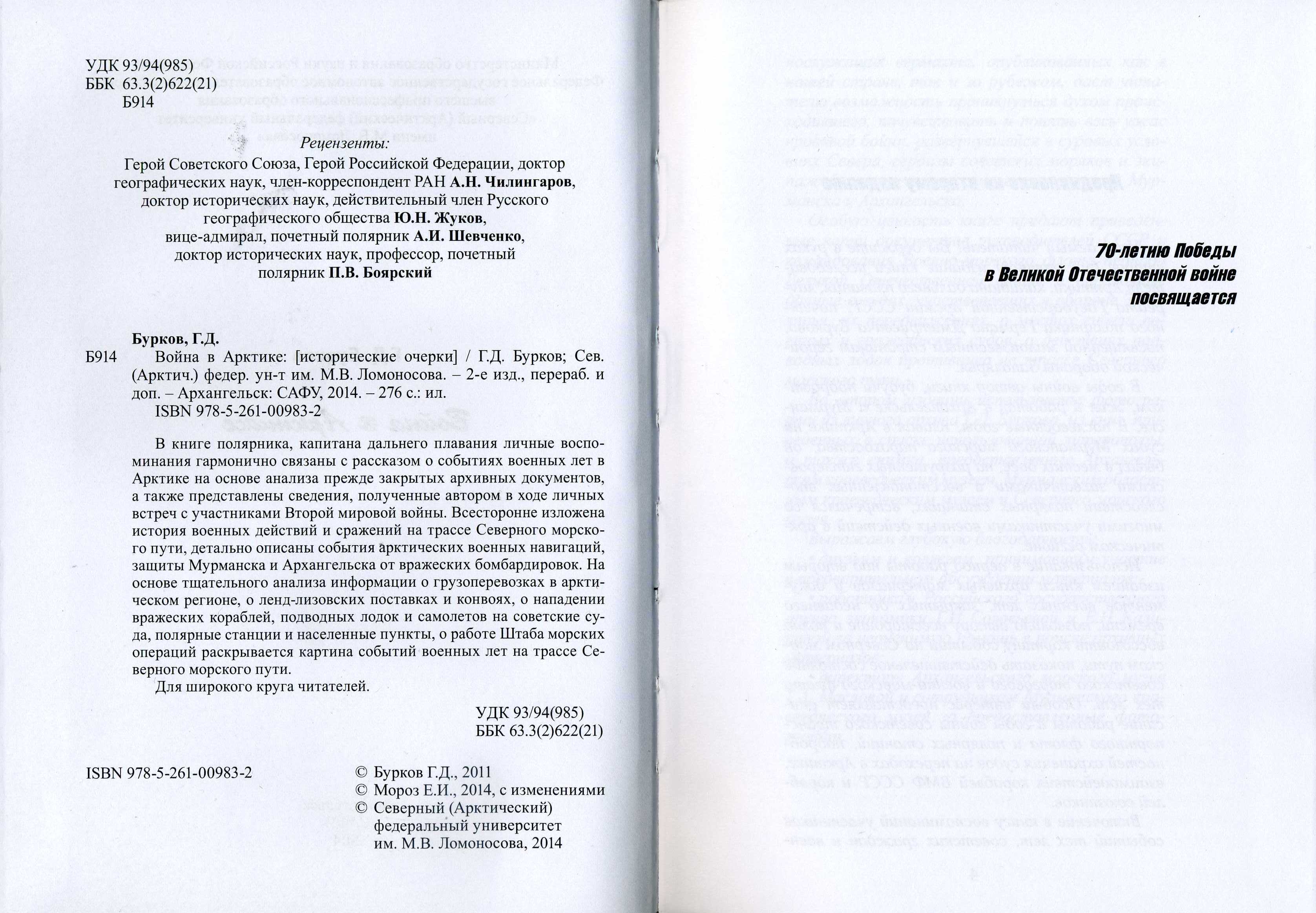 Их замечания и рекомендации позволили автору внести необходимые изменения и избавиться от неизбежных для такой сложной работы недостатков. Среди них хочется отметить ветеранов Великой Отечественной войны и участников Северных конвоев 1941-1945 годов контр-адмирала А. В. Петерсона, капитана 1 ранга А. Л. Лифшица, заслуженного полярника В. В. Дремлюга, а также представителя более молодого поколения офицеров флота- капитана 1 ранга И. В. Козыря.