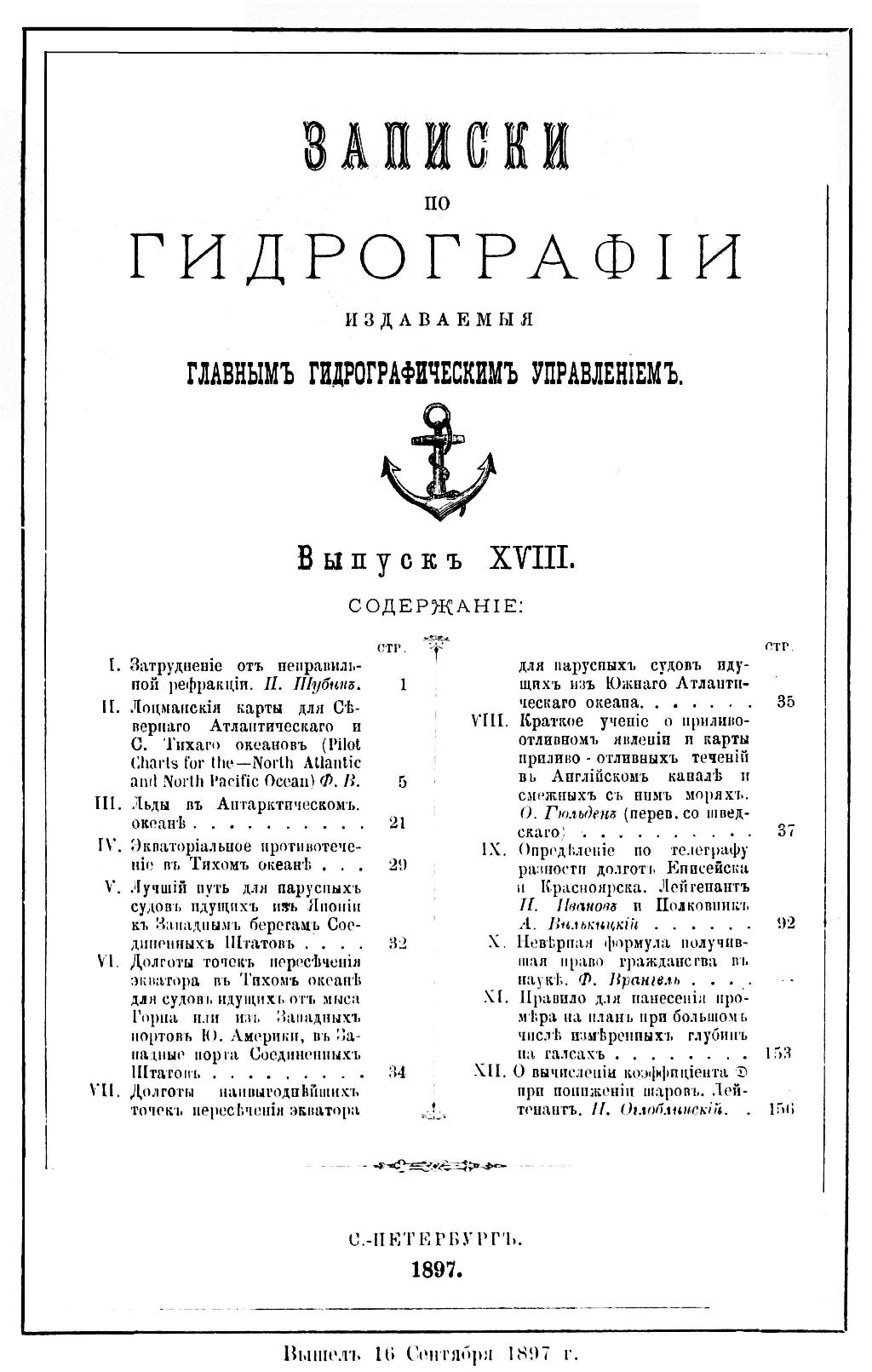 Записки по гидрографии. Вып. 18. - СПб., 1897