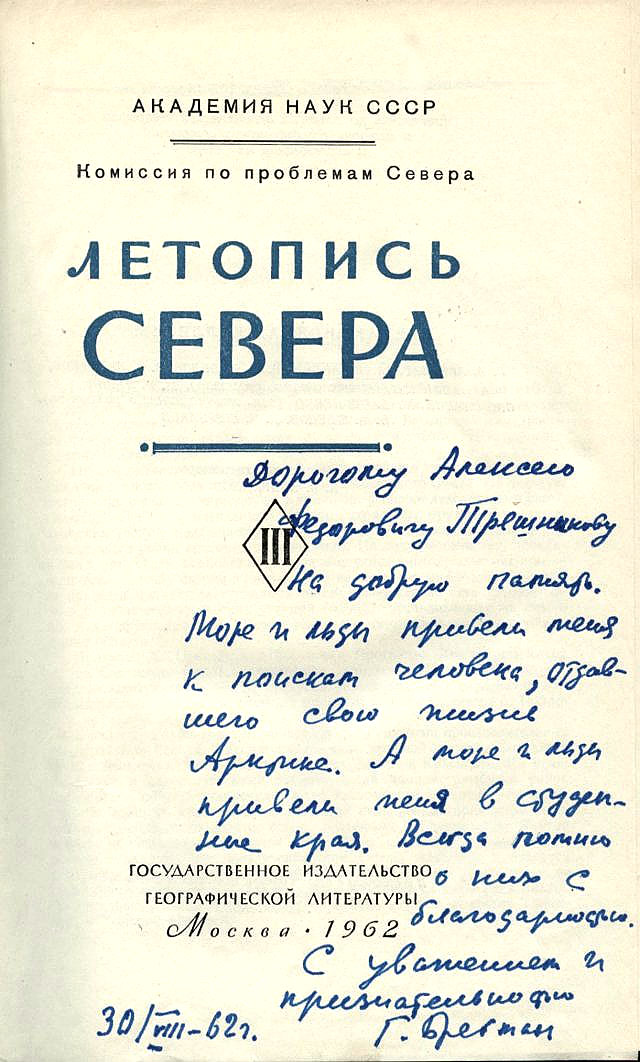 Алексеев Д. А., Звягин В. Н., Пискарев Б. А. К истории похода П. Тессема и П. Кнутсена в 1919 г.
