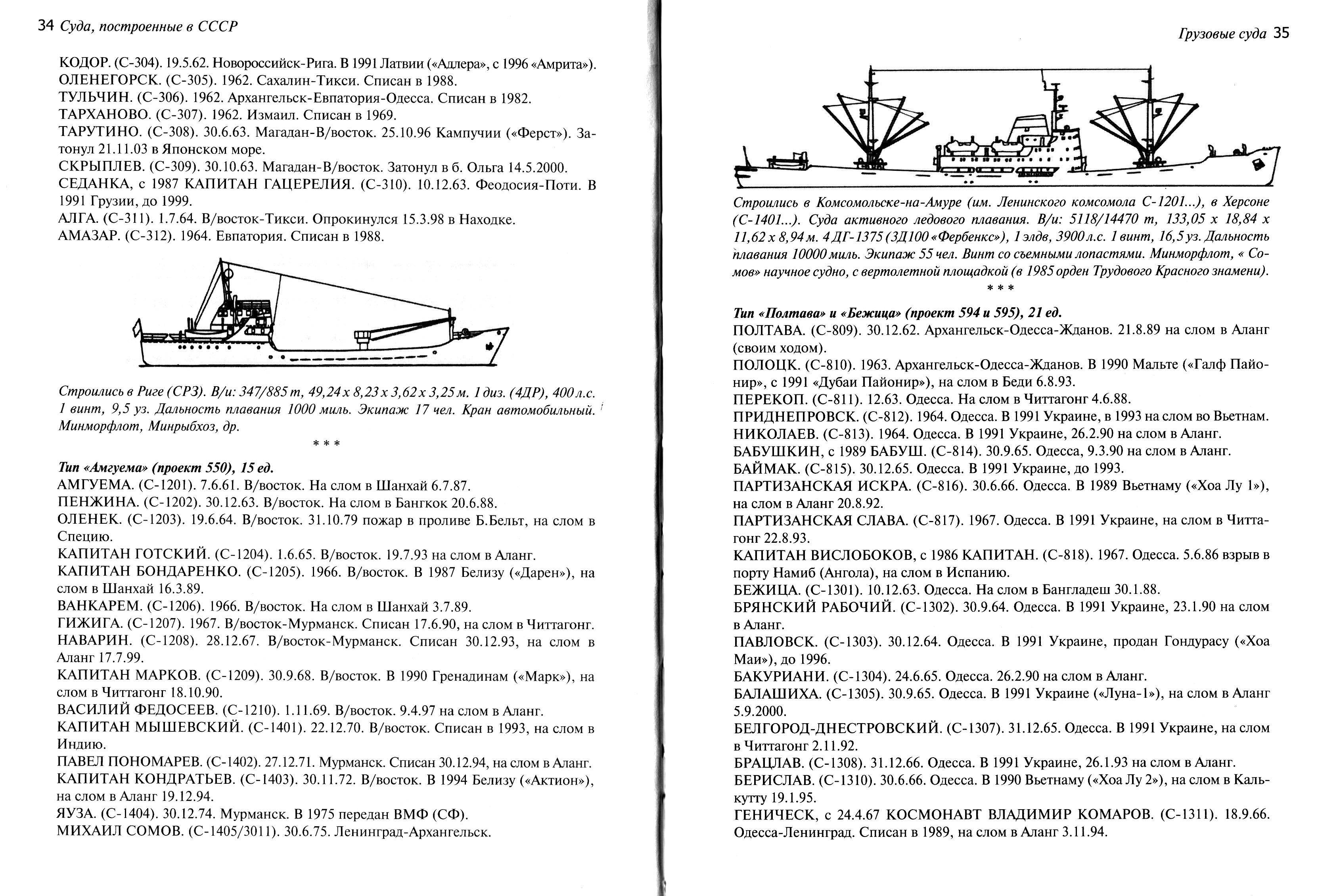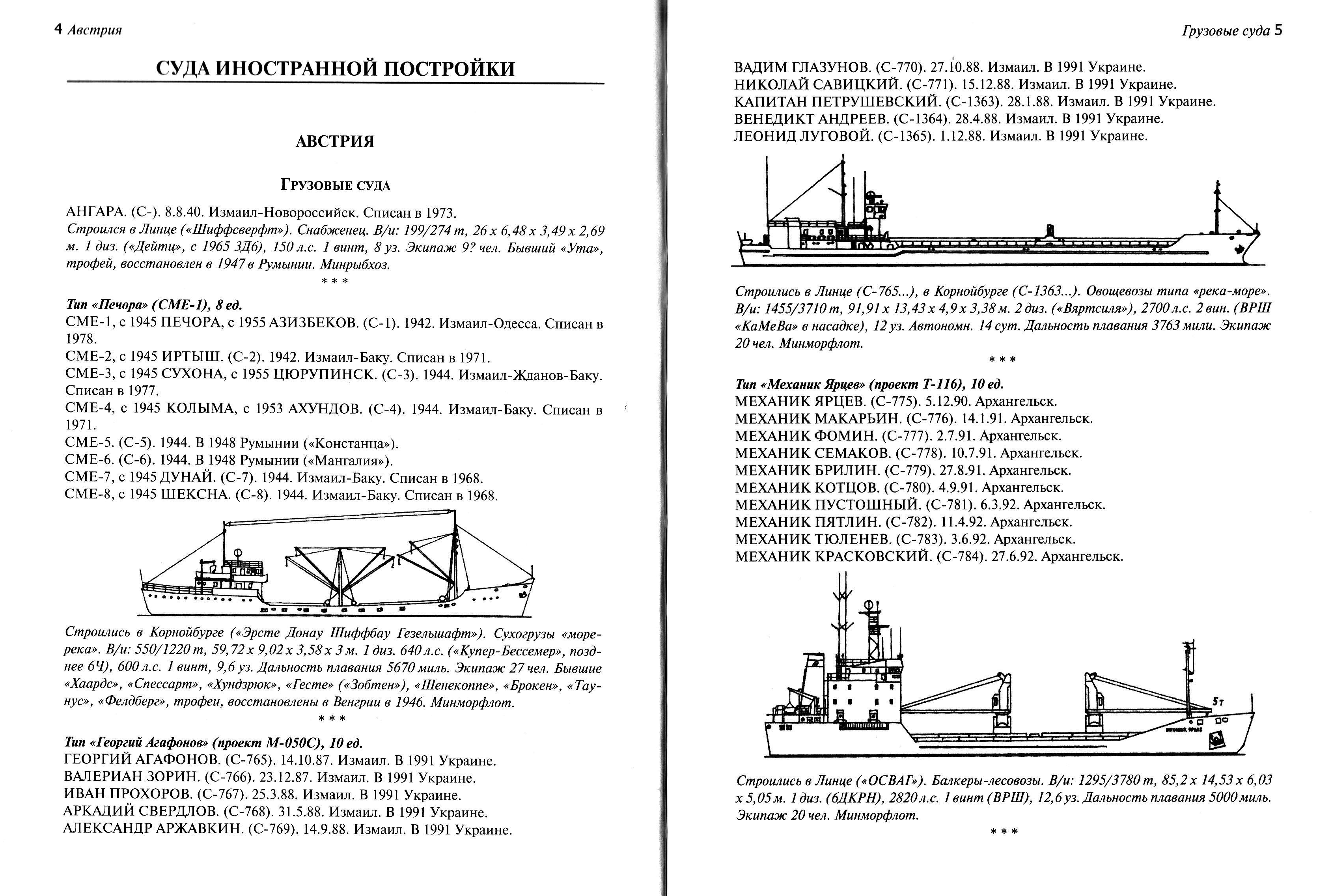 В советской прессе было опубликовано очень мало качественных чертежей наших судов – и здесь приходится обращаться к иностранным источникам. Особая проблема – конец карьеры судна. Дату списания в ряде случаев пришлось приводить по времени выбывания из списков Регистра, но на самом деле судно вполне может продолжать работать, а списание, особенно сейчас – лишь возможность для «бизнесмена» купить его по цене металлолома или продать по дешевке за границу... Наш бывший монолитный флот «растворился» в мировом фрахтовом тоннаже, начал переходить из рук в руки, а судам постоянно меняют названия. Ежегодные транспортные потери России от ухода наших судов под «удобные» флаги составляют до 3 миллиардов долларов. До перестройки, кстати, Минморфлот «зарабатывал» до 5,5 миллиардов.