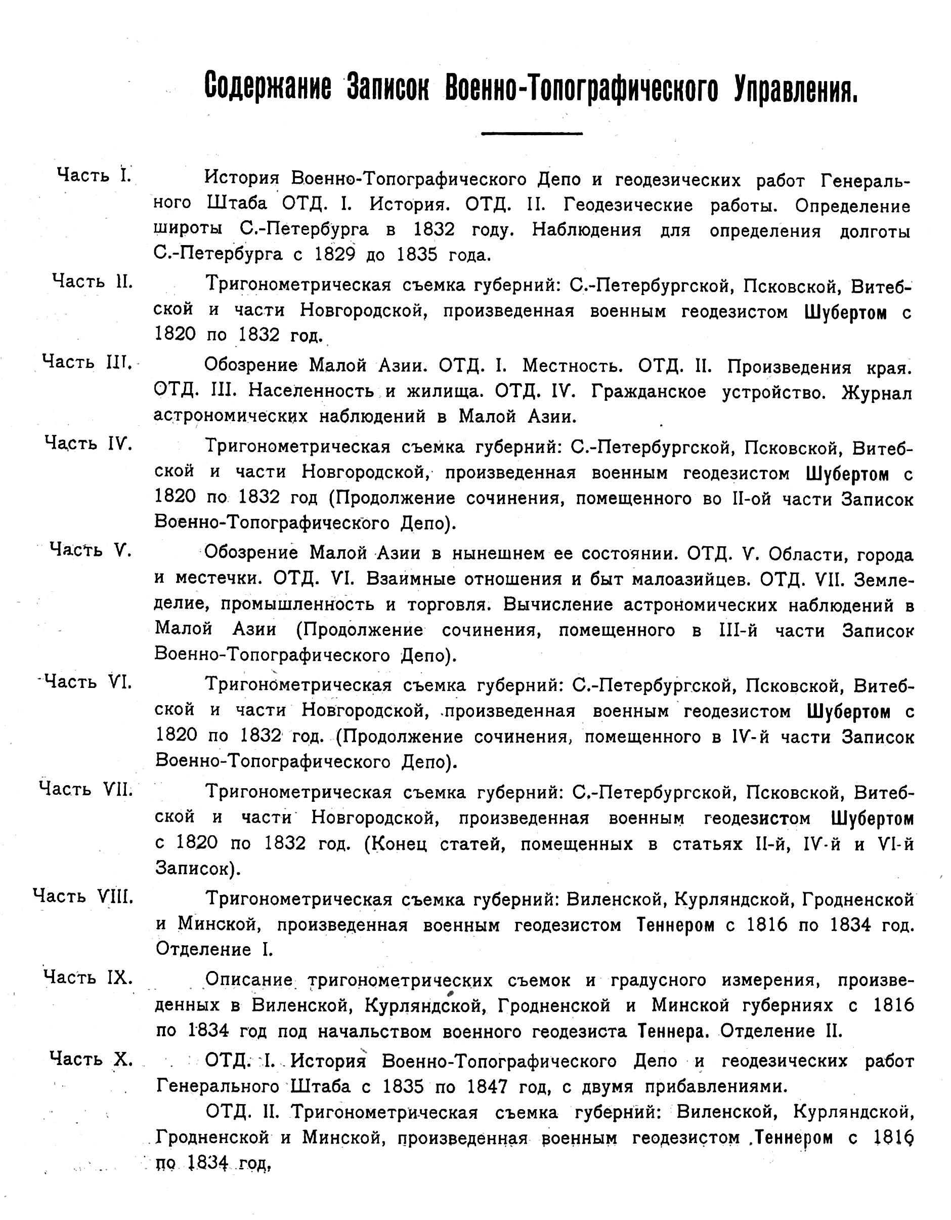 Часть X. ОТД. I. История Военно-Топографического Депо и геодезических работ Генерального Штаба с 1835 по 1847 год, с двумя прибавлениями.