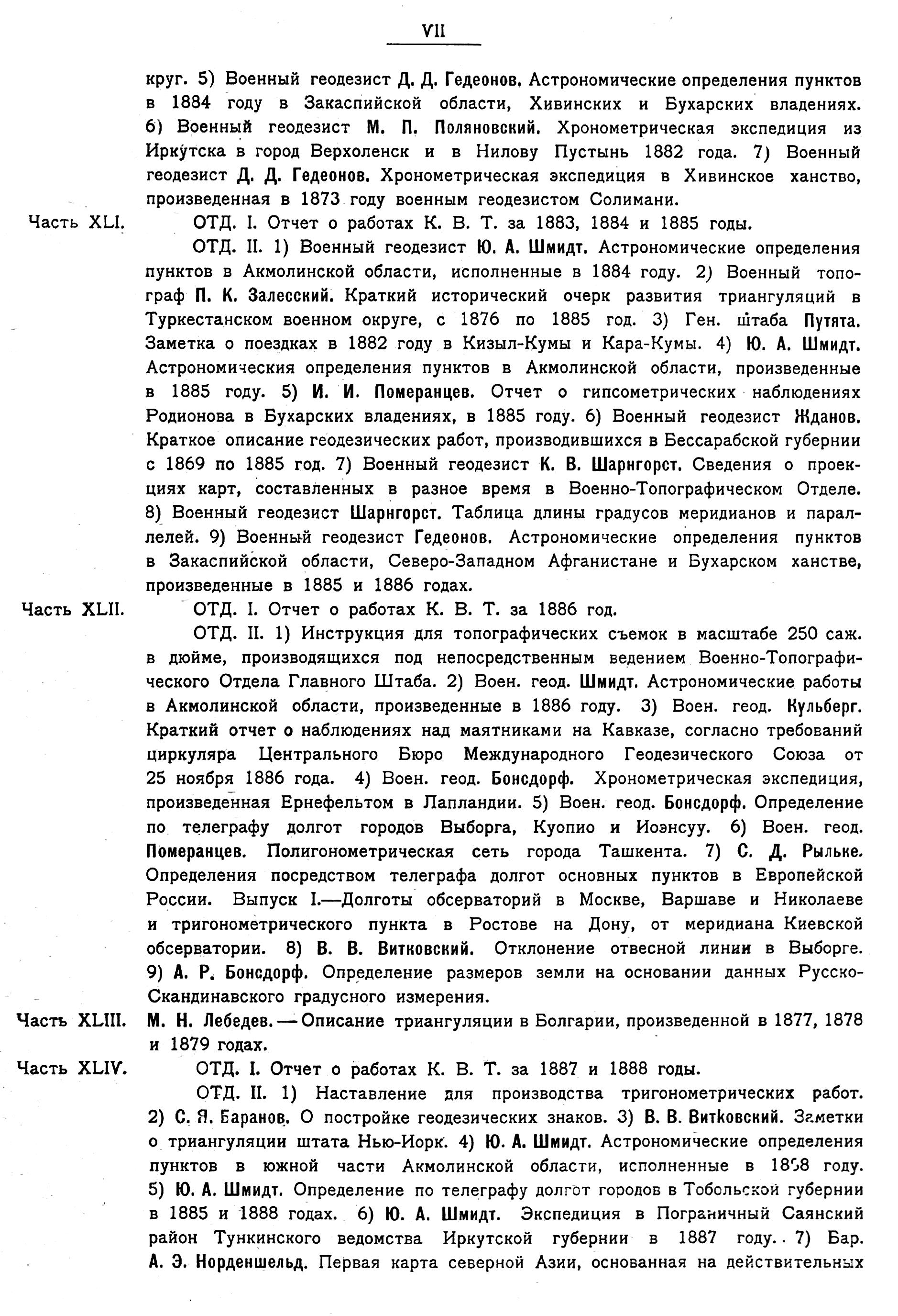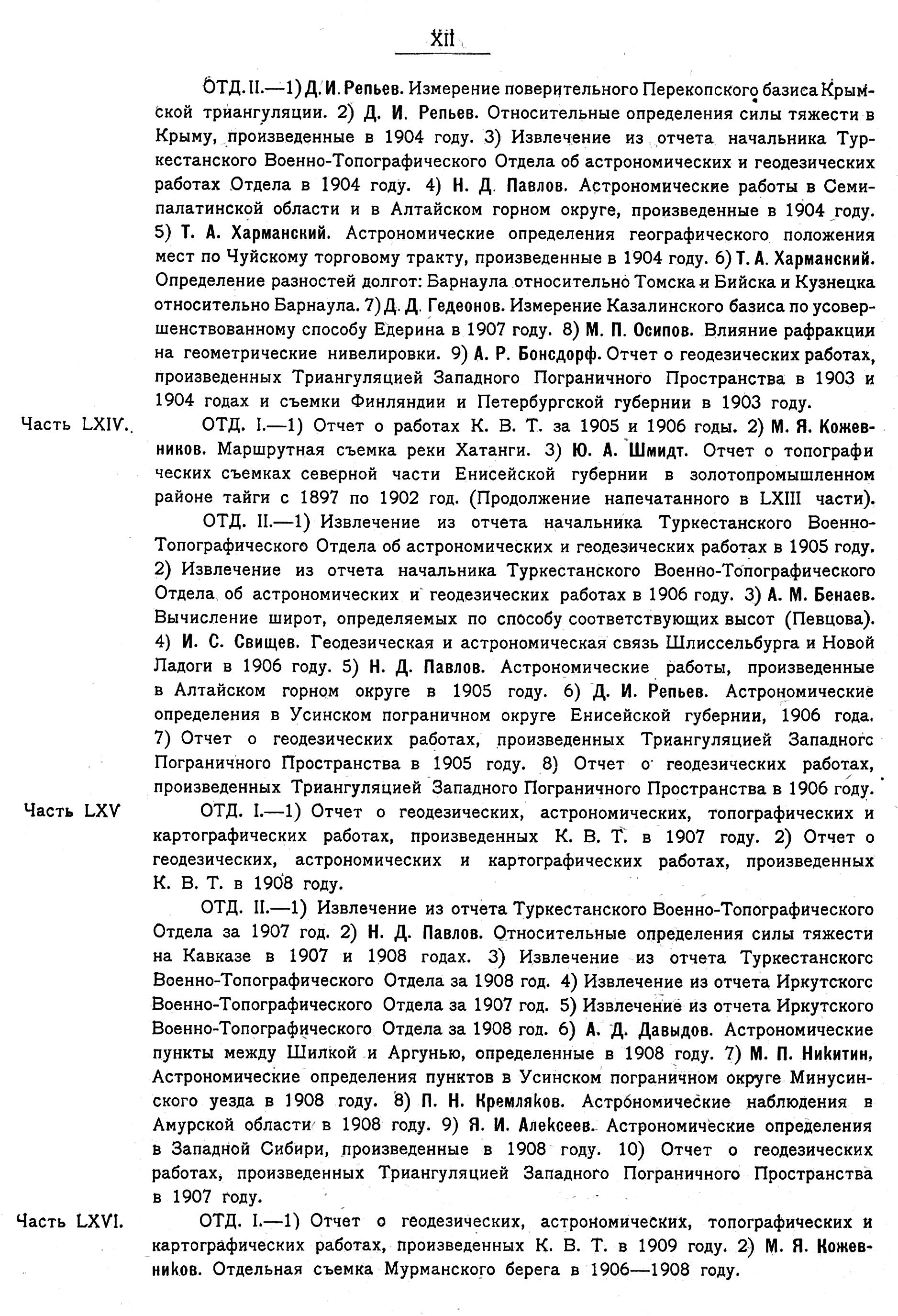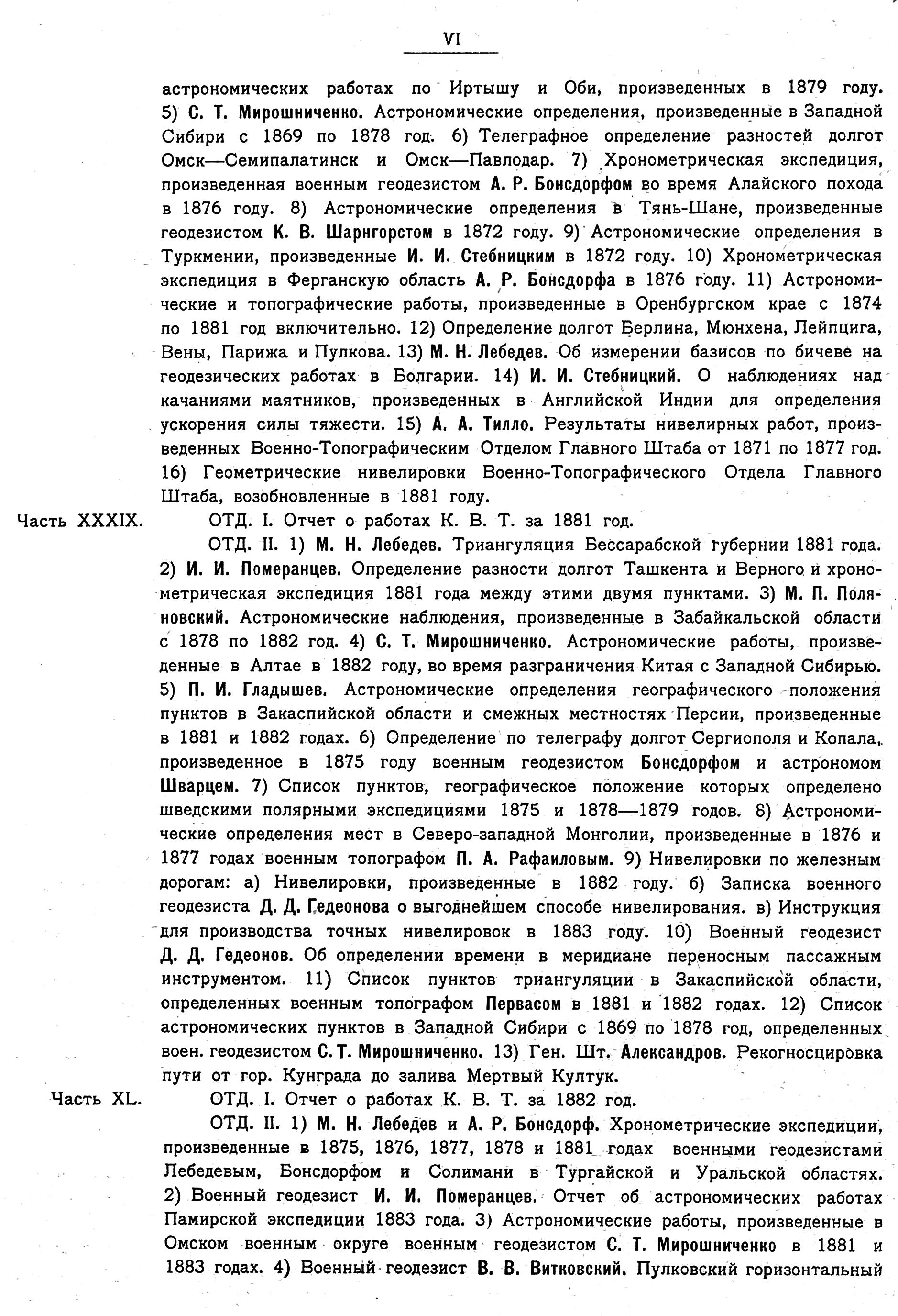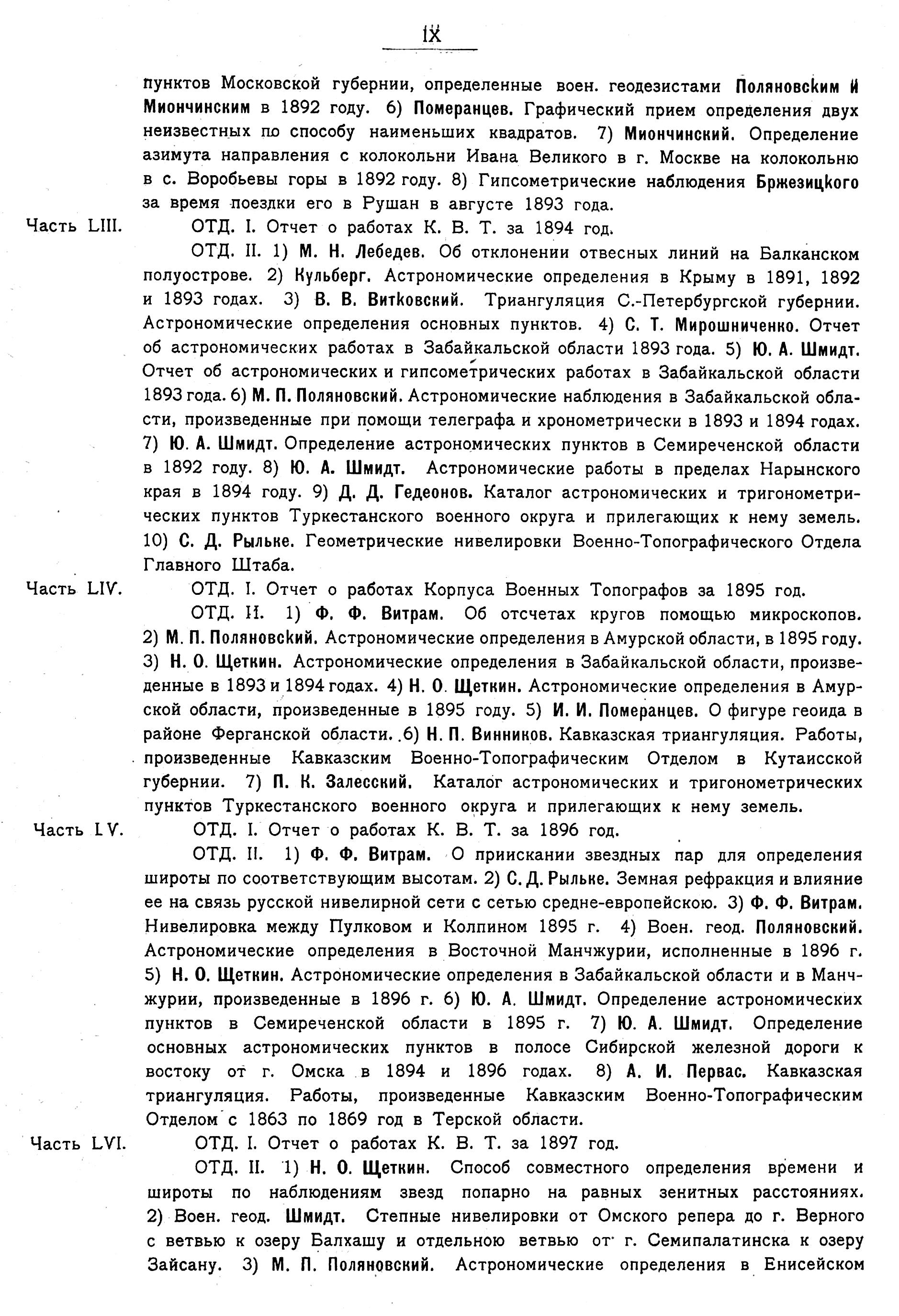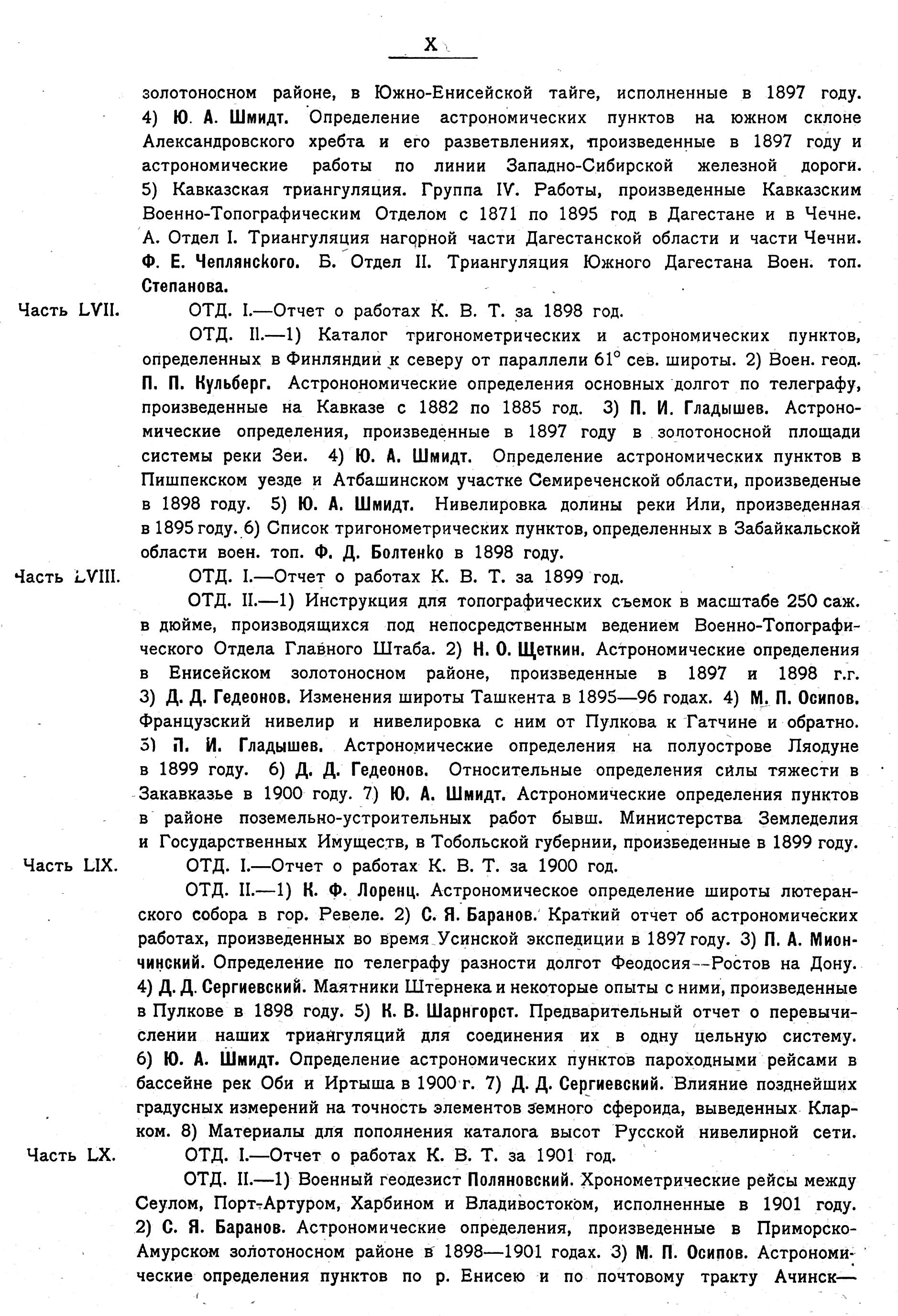 2) О геодезических работах, произведенных в Оренбургском крае с 1820 по 1856 год. 3) Окончательные выводы из астрономических наблюдений, произведенных астрономом Забайкальской экспедиции Шварцем с 1849 по 1853 г.