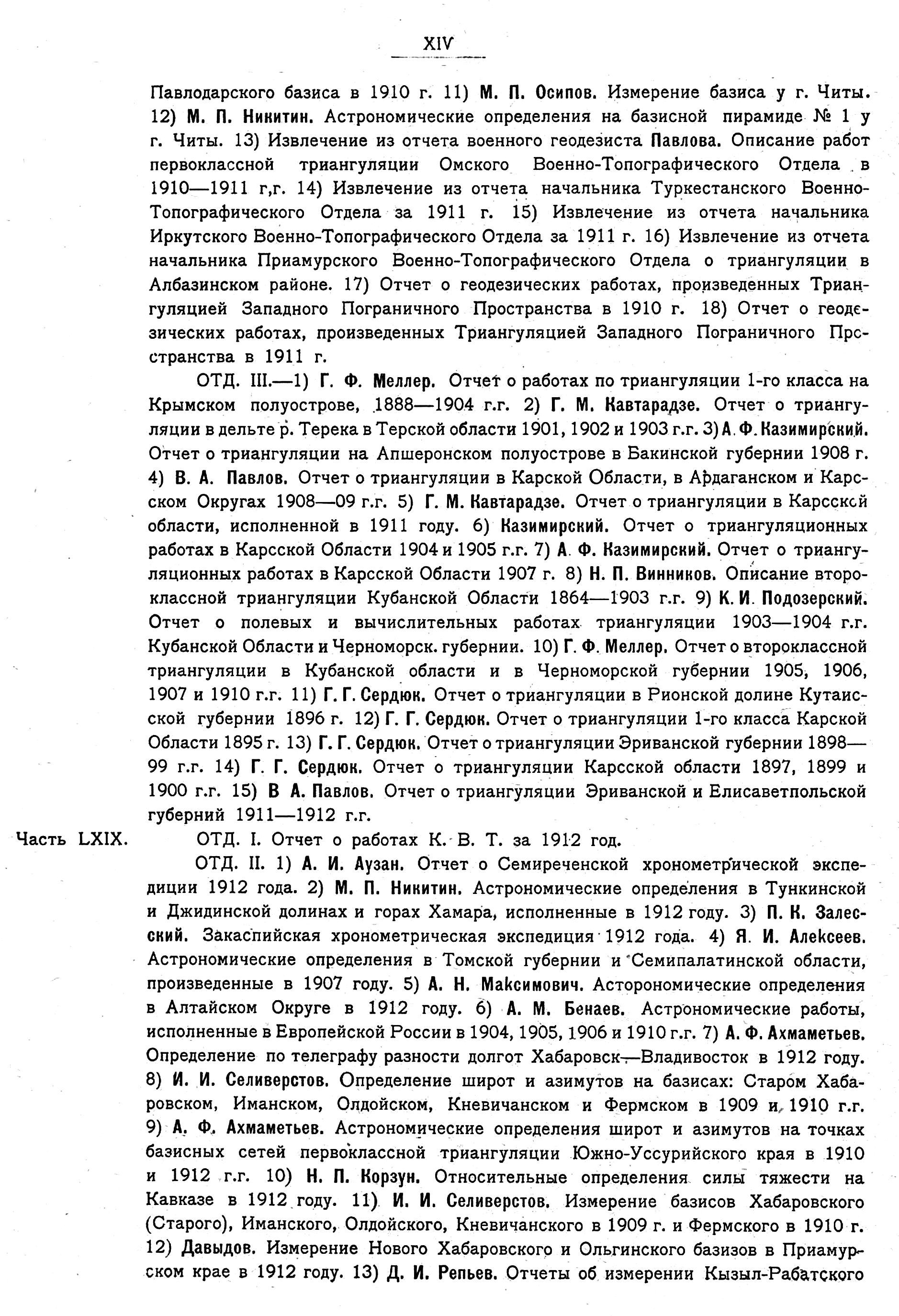 ОТД. II. 1) Описание тригонометрического измерения Закавказского края. 2) Описание тригонометрических работ в Азиатской Турции.