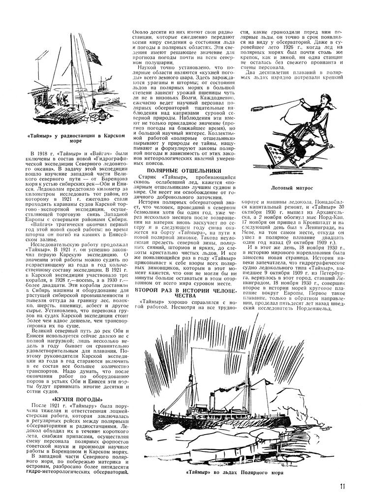 «Таймыр» хорошо справлялся с ногой работой. Несмотря на все трудности, какие громоздили перед ним полярные льды, он точно в срок появлялся на виду у обсерваторий. Даже в суровейшее лето 1926 г., когда лед на полярных морях был почти столь же крепок, как и зимой, ни одна станция не осталась без свежего провианта и смены персонала.