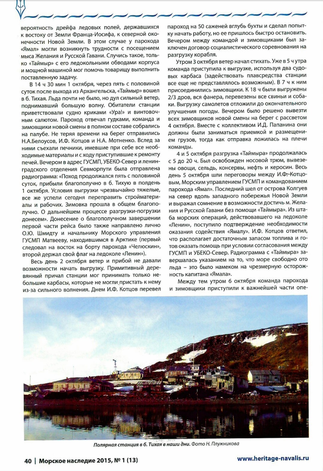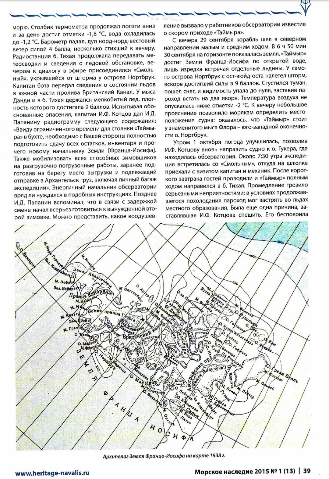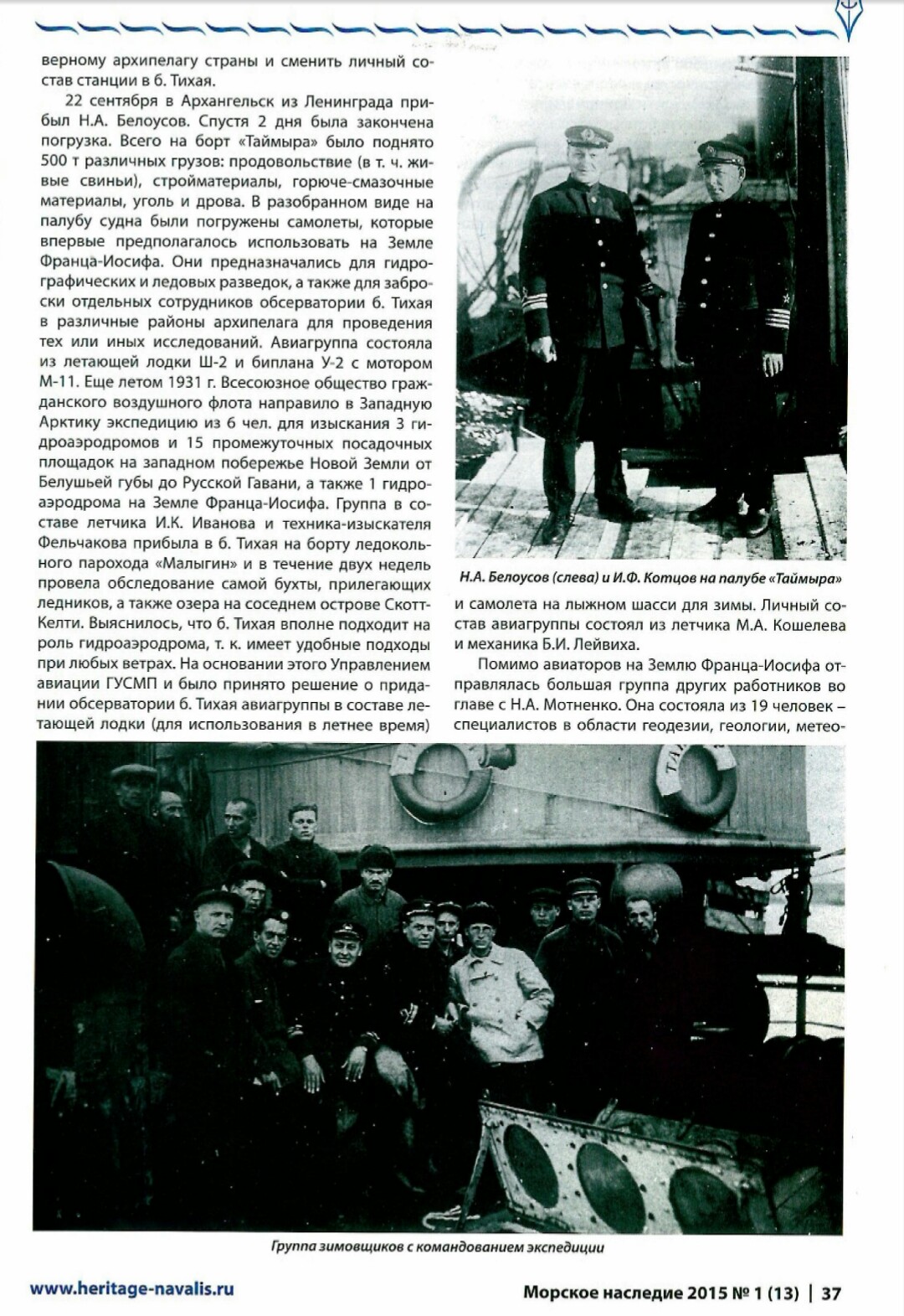 "Первый зимний: поход ледокольного парохода "Таймыр" к Земле Франца-Иосифа в 1933 г. // "Морское наследие", № 1, 2015 г., сс.34-43.