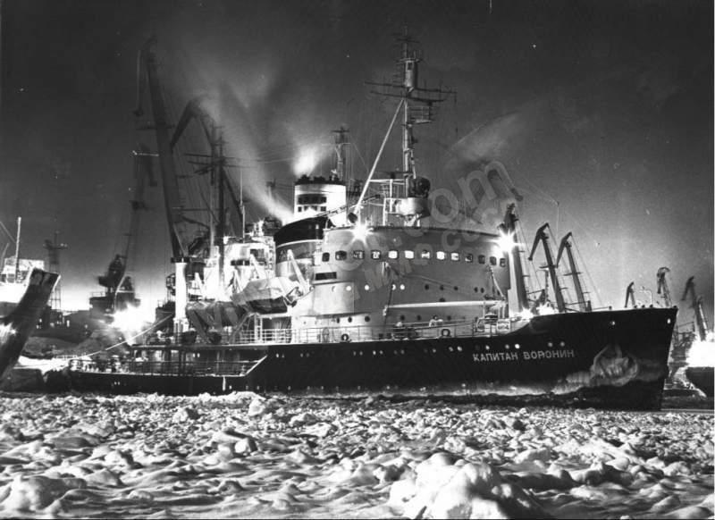 Ледокол проекта «Капитан Белоусов». Назван в честь полярного капитана В.И. Воронина (см. viewtopic.php?f=8&t=2014 ). Построен в 1955 г. на верфи «Хольстрем Хисталахти» концерна «Вяртсиля» в Хельсинки (Финляндия). В авг.-сент. 1956 г. участвовал в проводке отряда военных кораблей, шедшего по Северному Морскому пути с Севера на Д. Восток. Впоследствии передан в состав Азовского пароходства. Списан.