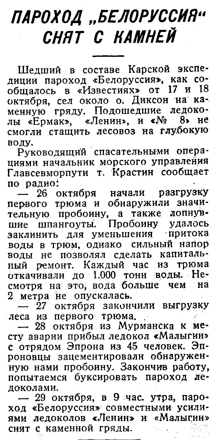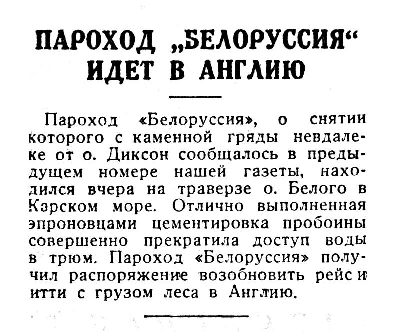 Пароход. Заложен в 1935 г. на судоверфи «Furness Sb Со» в Хавертоне (Великобритания) по заказу СССР, спущен на воду в 01. 1936 г., вступил в строй осенью 1936 г. и вошел в состав СГМП. В 1938 г. переведен на баланс ДГМП. В годы Великой Отечественной войны осуществлял экспортно-импортные перевозки между портами СССР и союзников; летом 1942 г. по Севморпути совершил переход с экспортным грузом из Сан-Франциско (СШ А) в Архангельск, в период с 30. 12. 1942 г. по 06. 05. 1943 г. в составе союзного конвоя «RA-51» перешел из Мурманска через Панамский канал в Сан-Франциско, после чего, приняв грузы для снабжения, направился в порты и пункты восточного сектора Арктики. 03. 03. 1944 г., следуя очередным рейсом из США во Владивосток, в Охотском море, торпедирован и потоплен подводной лодкой.