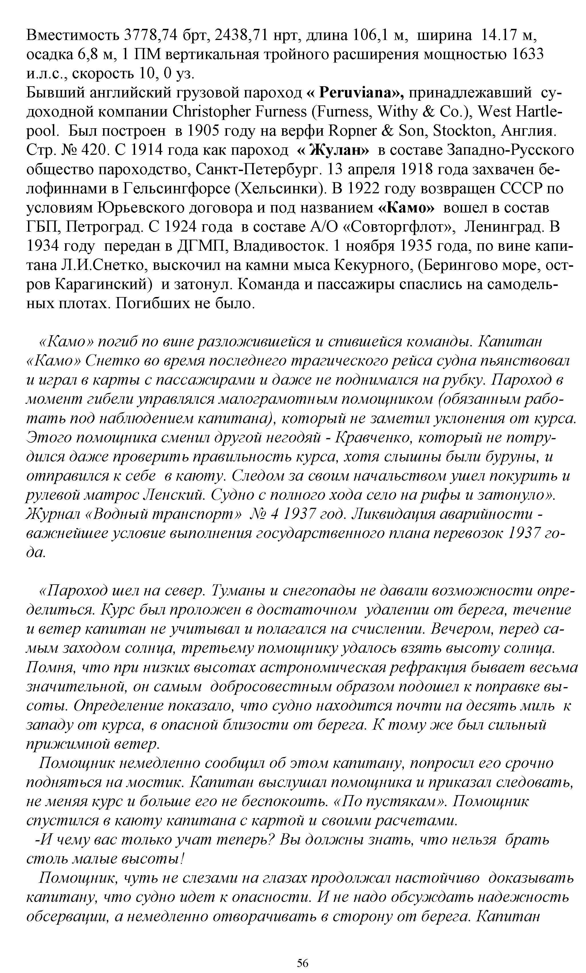 Капитан «Сахалина» т. Кудляй сообщил нашему корреспонденту, что течения в местах гибели «Камо» не изучены, мало известны и меняются в зависимости от времени года. Там. где погиб «Камо», нашли свою гибель еще пять судов — советские, японские и английские. И. ФЕТИСОВА.