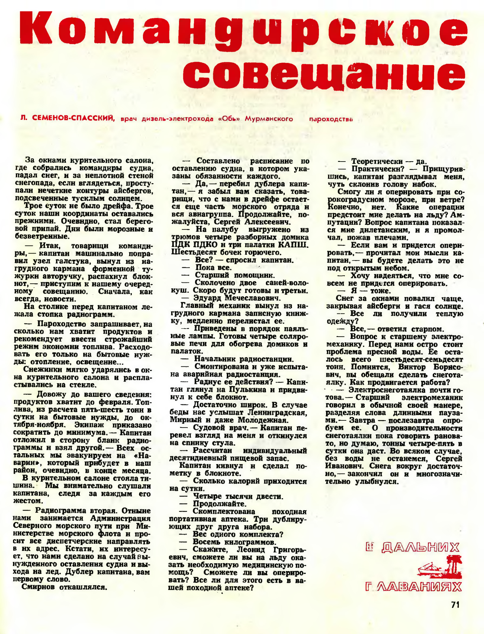 Семенов-Спасский Л.Командирское совещание//Морской флот №04 1975 с.71-72