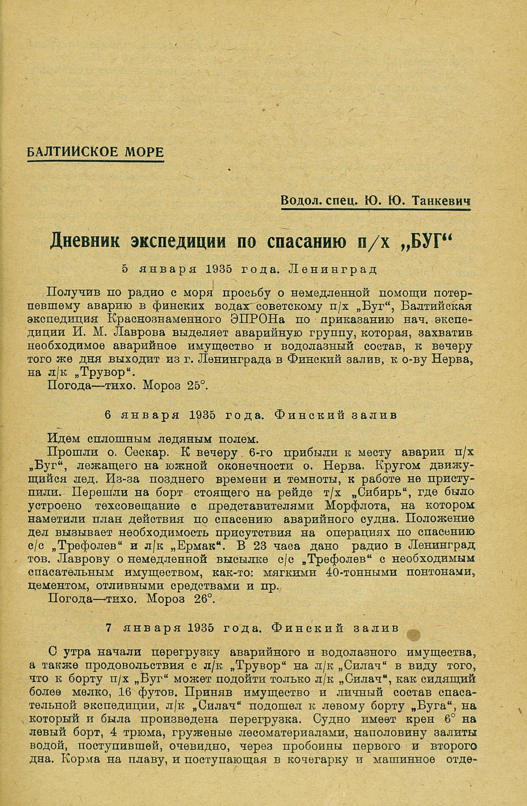 Дневник экспедиции по спасанию п/х "БУГ"