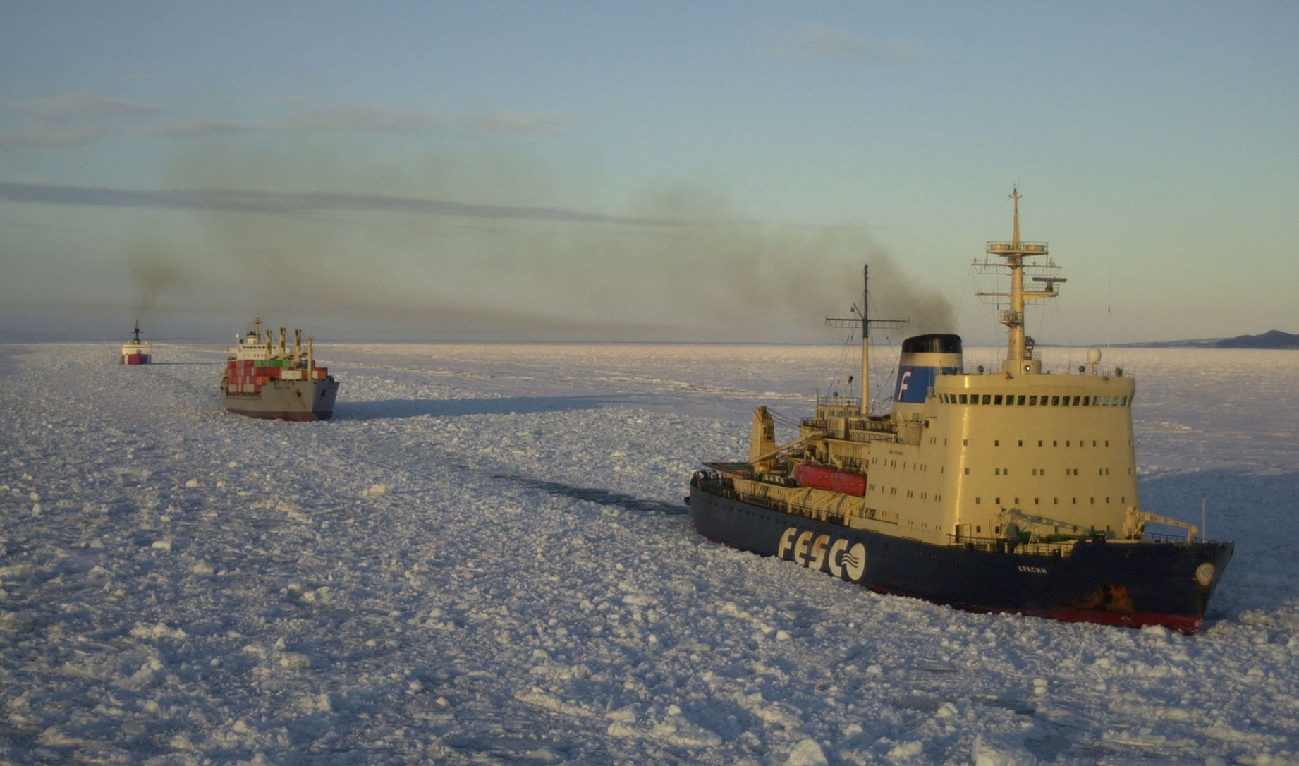 По поручению правительства Российской Федерации ледоколом «Красин» под командованием капитана Виктора Константиновича Ковальчука осуществляется операция по обеспечению снабжения научно-исследовательской станции «МакМердо» в антарктическом море Росса. В сложной ледовой обстановке «Красин» проводит танкер и контейнеровоз с грузом топлива, снаряжения, продовольствия и медикаментов для тысячи американских полярников. Несмотря на сильный ветер и подвижку айсбергов, постоянно закрывавших пробитый во льду канал, антарктический рейс завершается с опережением графика и без единого повреждения проводимых судов.