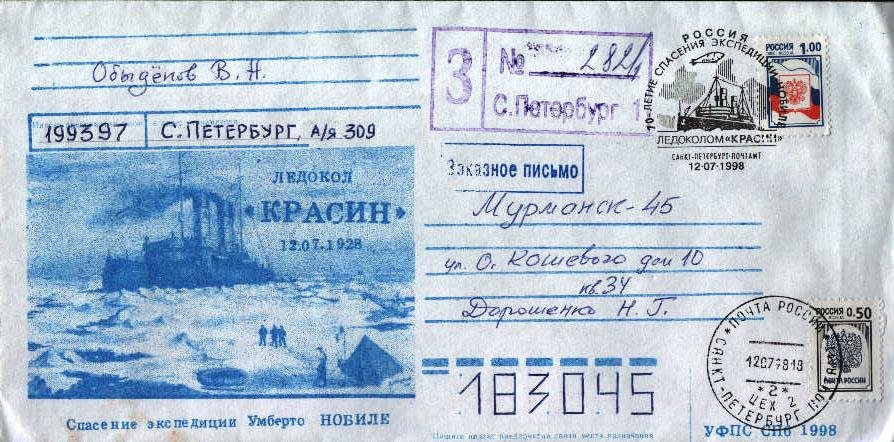 70 лет со дня спасения ледоколом "Красин" экспедиции У. Нобиле. 01.01.1998.