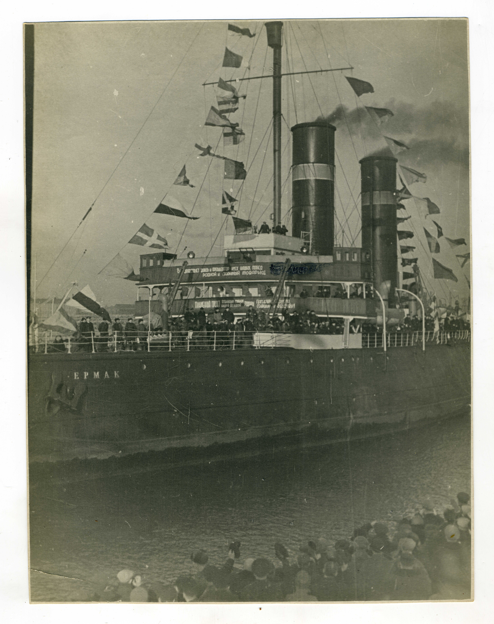 Источник: http://www.twmuseums.org.uk/engage/blog ... uilt-ship/На этой, как стало видно, "Ермак" в мобилизационном варианте - с пушечками. 'Ermack' at the Low Walker shipyard. TWCMS: G7901K (detail)