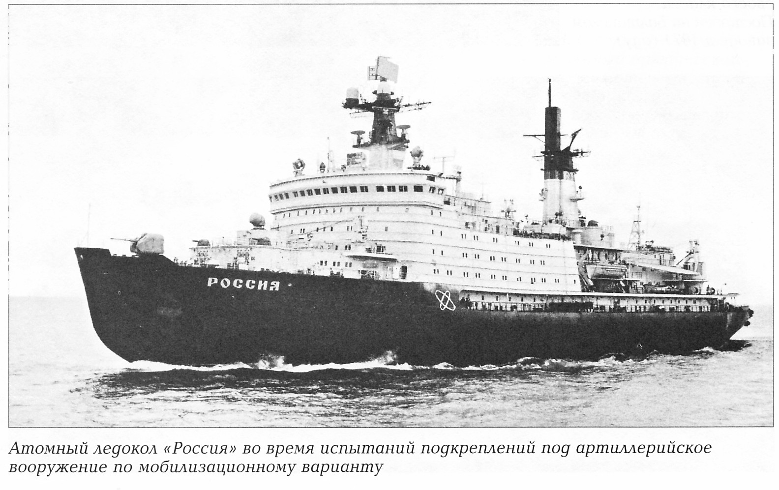 Атомный ледокол «Россия» во время испытаний подкреплений под артиллерийское вооружение по мобилизационному варианту