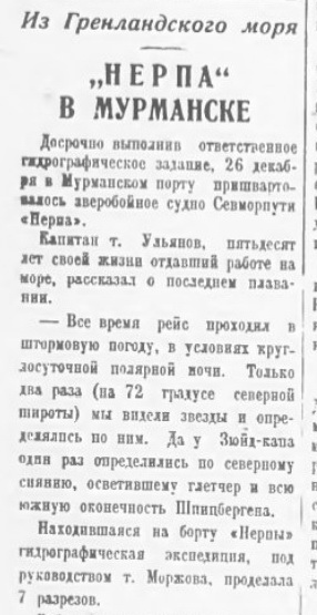 Посещение о-вов Пахтусова зверобойным судном .Нерпа". По сообщению