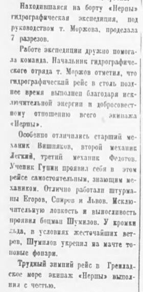 2-го штурмана г/с „Нерпа" т. Шадрина осенью 1932 г. судно под командой капитана