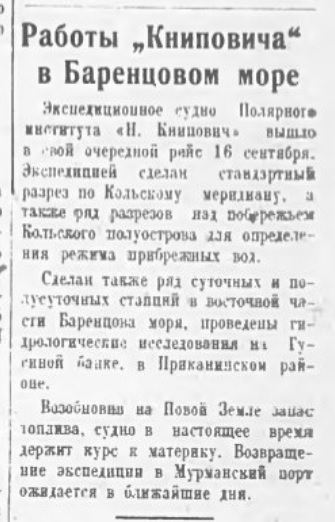 Еще один выдающийся рейс «Николая Книповича» состоялся в 1939 году, когда научная группа под руководством Юлия Марти открыла в высоких широтах Баренцева моря гигантское промысловое скопление сельди, названное «полярным заломом». Это был триумф совместного труда рыбаков и ученых, позволивший затем широко развивать океанический промысел.