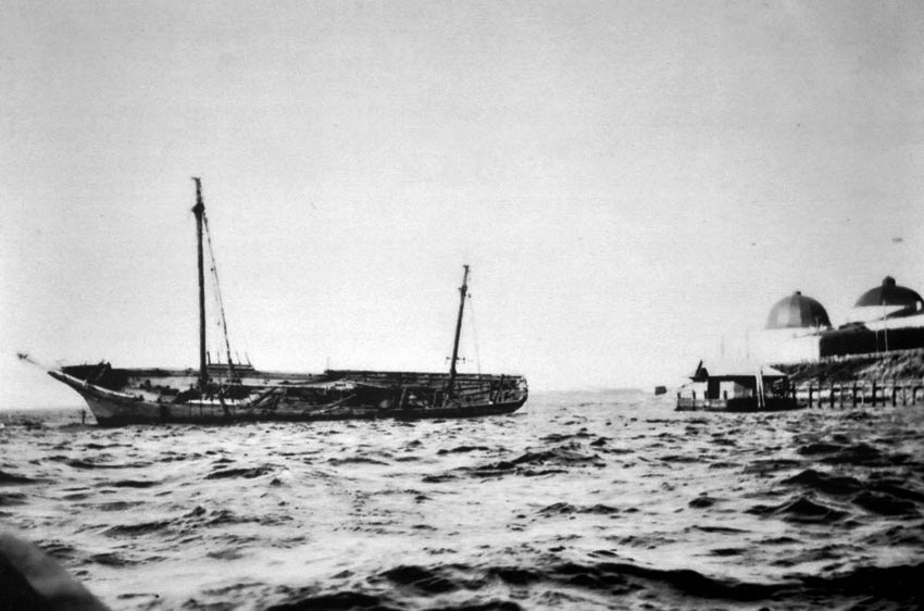Выход экспедиции из Архангельска с отставанием чуть ли не на полтора месяца от запланированной даты оказался для седовцев роковым. Коротко арктическое лето, и конец августа является, собственно, уже предзимьем. Буквально через несколько дней после проводов, когда « Фока » был в горле Белого моря, разразился сильнейший шторм. Встречный ветер сносил судно назад, и мощности слабенькой паровой машины, сообщавшей шхуне четырехузловый ход, не хватало, чтобы противостоять свирепому натиску стихии. К тому же открылась течь в трюме - вода стала угрожающе прибывать, подбираясь к топкам. Три дня трепало море « Фоку », однако дальнейший путь прошел при благоприятном ветре, и вновь шторм настиг его лишь у самой Новой Земли.