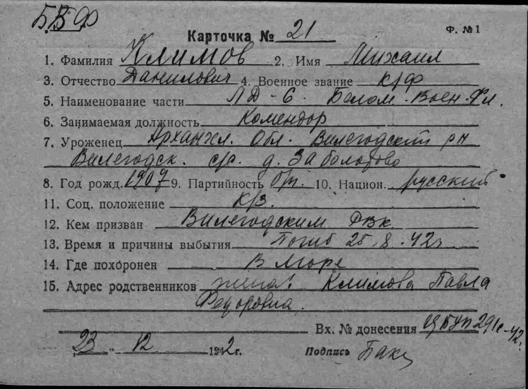 Место рождения Ивановская обл., г. Иваново, Рабочая, 19